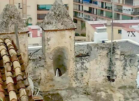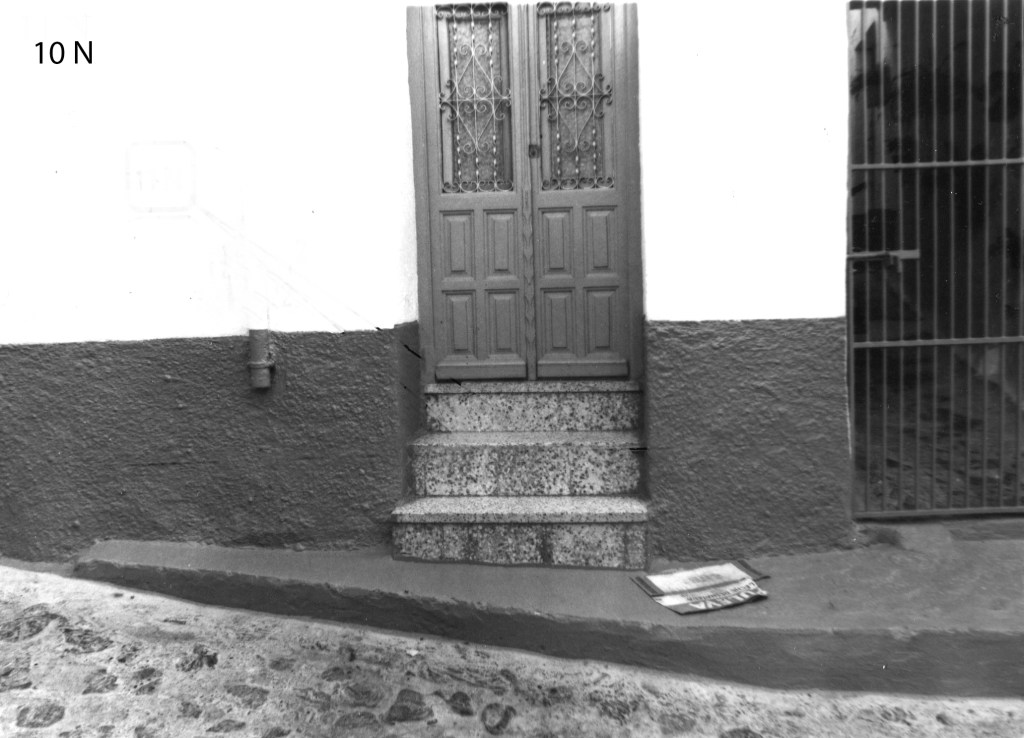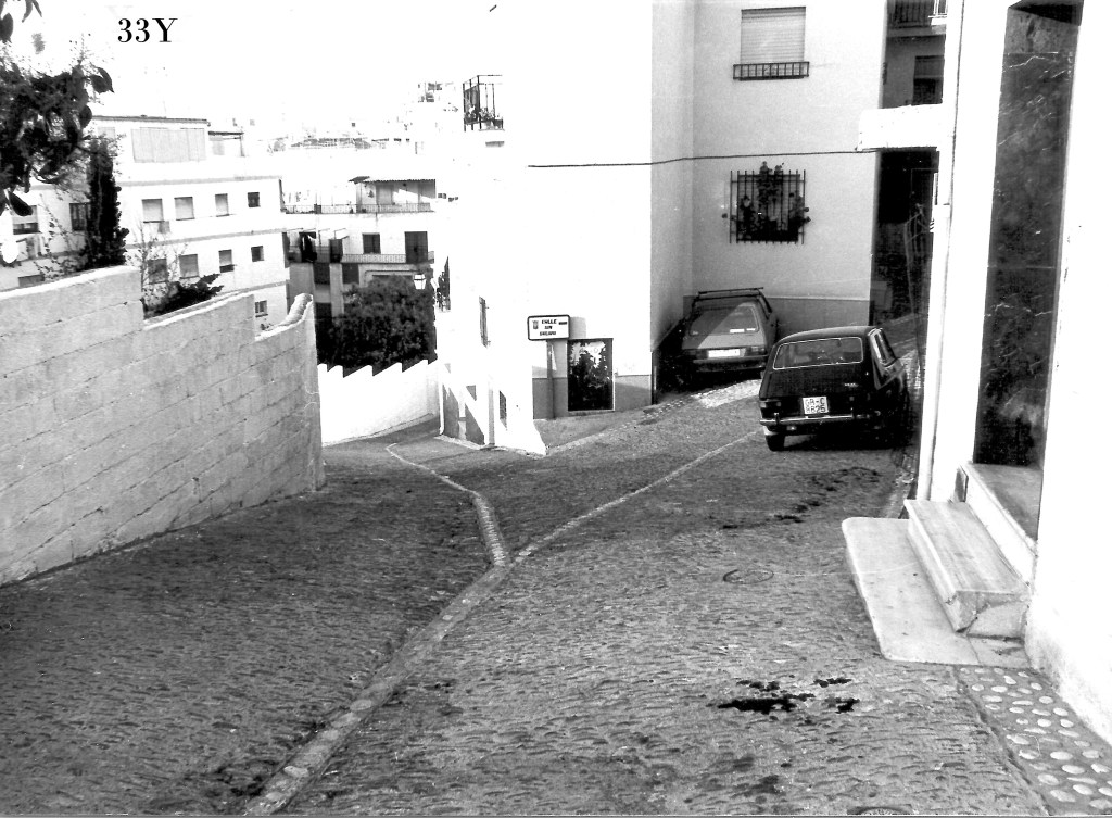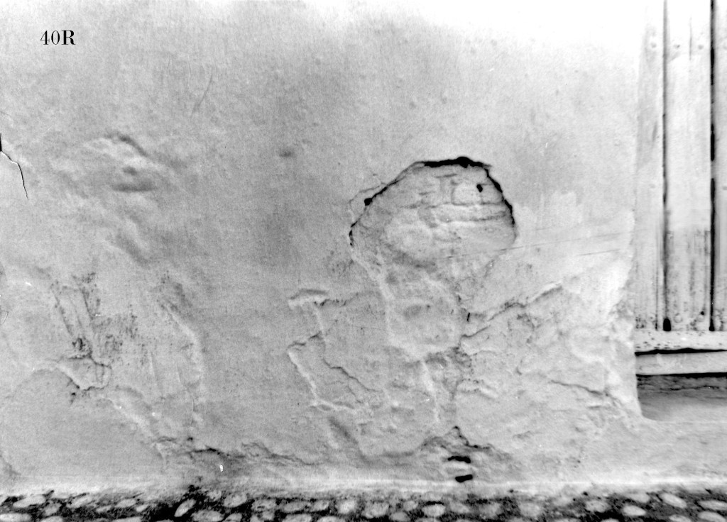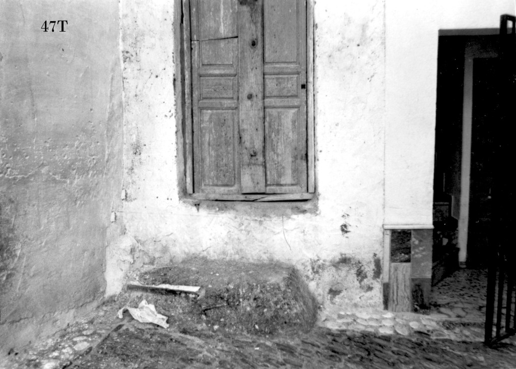 Foto 4.- Las dos imágenes que se van a mostrar secuencialmente nos indica que los nombrados leones fenicios se encontraban, años atrás, en el jardín de este vivienda. La cara del león está desgastada por las circunstancias que en se encontraba este elemento: bastante deformado.