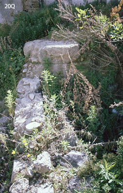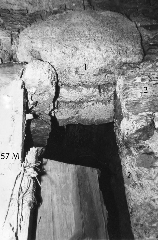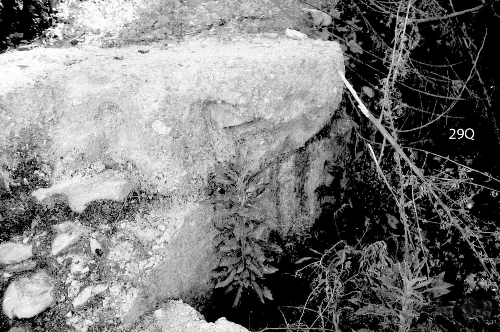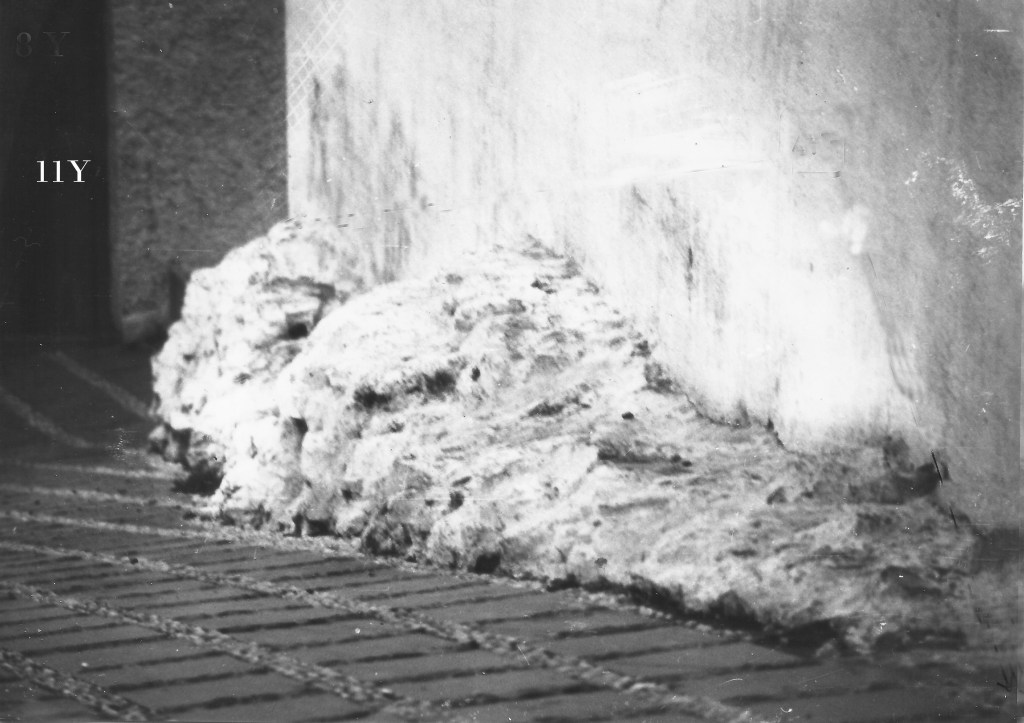 Foto 11.- Esta pieza, del mismo tipo de material, está tallada como para que, sobre ella, se encajara una de las supuestas figuras del monumento funerario. Si se comparan las anchuras de todas estas piezas, puede comprobarse que están talladas para que los elementos decorativos encajen a la perfección haciendo juego sobre el monumento. Sólo basta superponerlos.