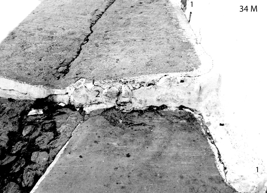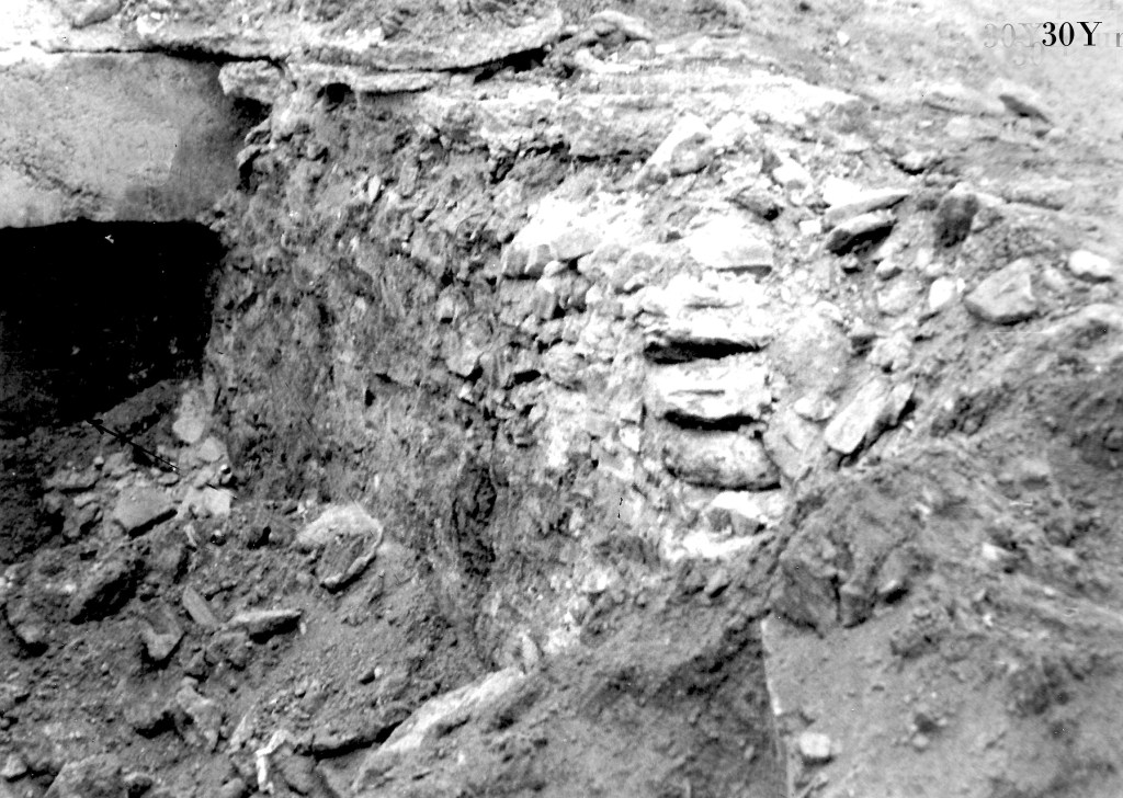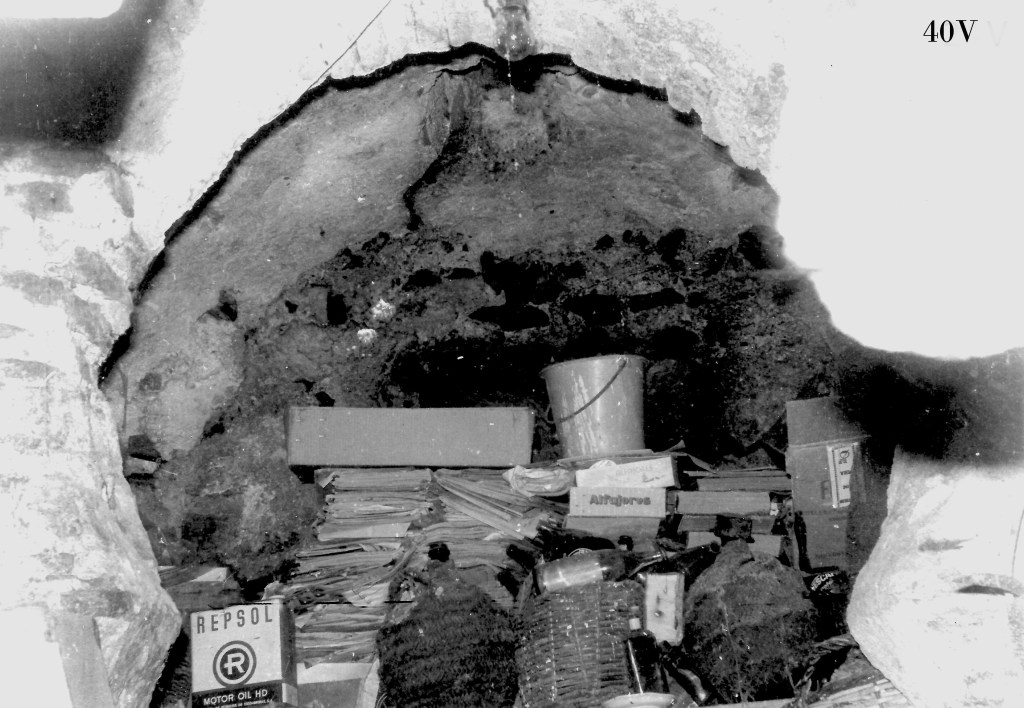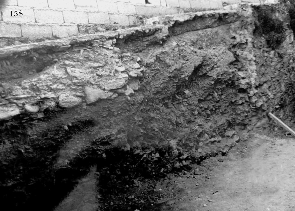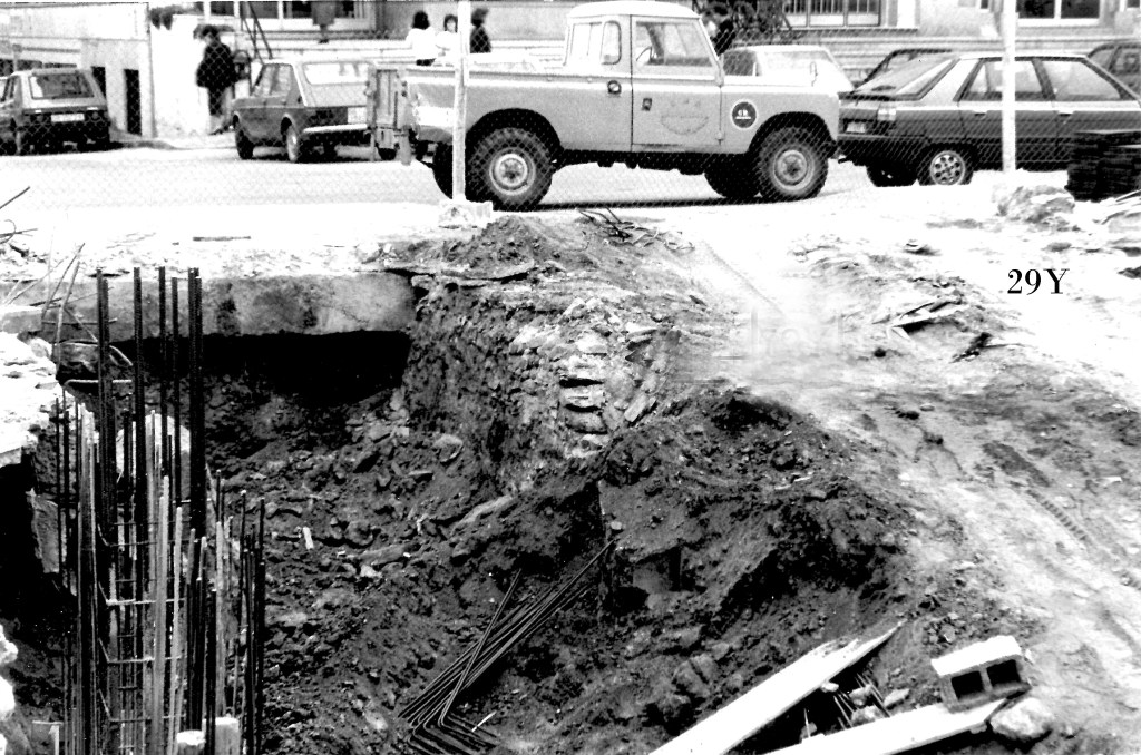 Fot 1.- Esta imagen refleja uno de los momentos en que se realizaron excavaciones fuera del contexto de las practicadas en el terreno conocido como Puente del Noi. Y aparecen los mismos fenómenos que se han mostrado posteriormente en la excavaciones oficiales. El corte lateral muestra la linde con el terreno de nuestras excavaciones, donde, en otros momentos, se verán los materiales comunes de todo este recinto. La excavación se hizo con criterio aceptable a pesar de que el terreno no permitía cuadricular con exactitud las catas donde van a ir apareciendo la gran variedad de materiales comunes a todo este espacio.