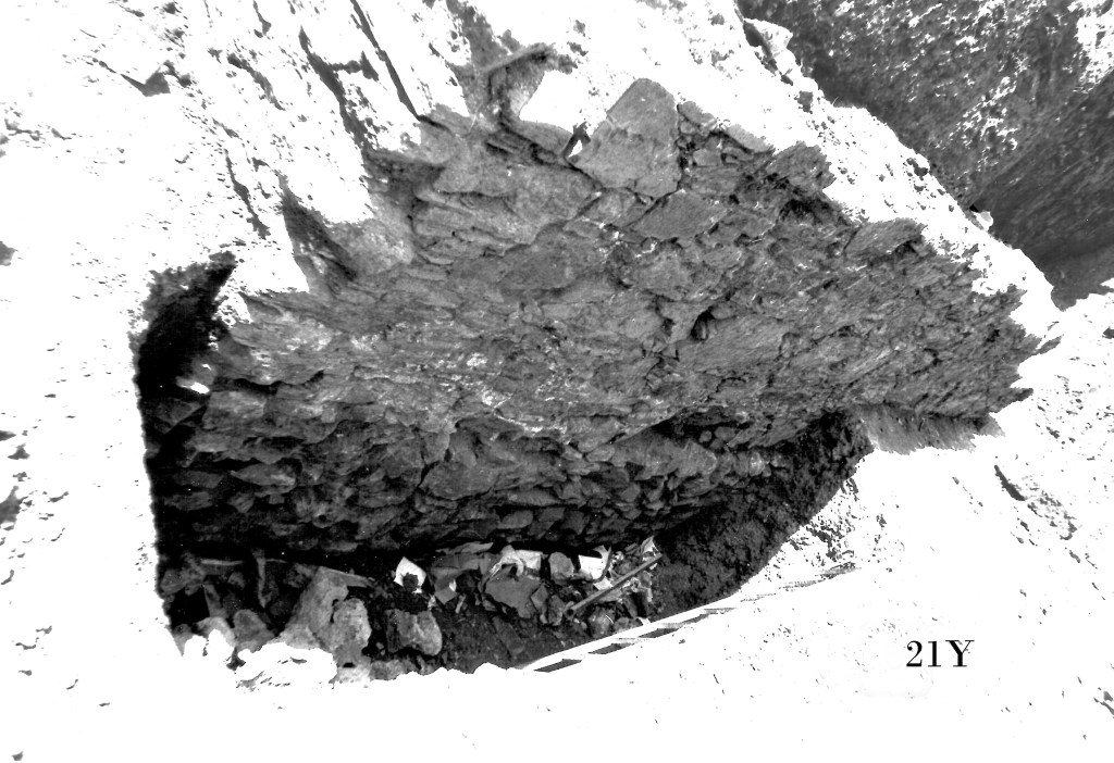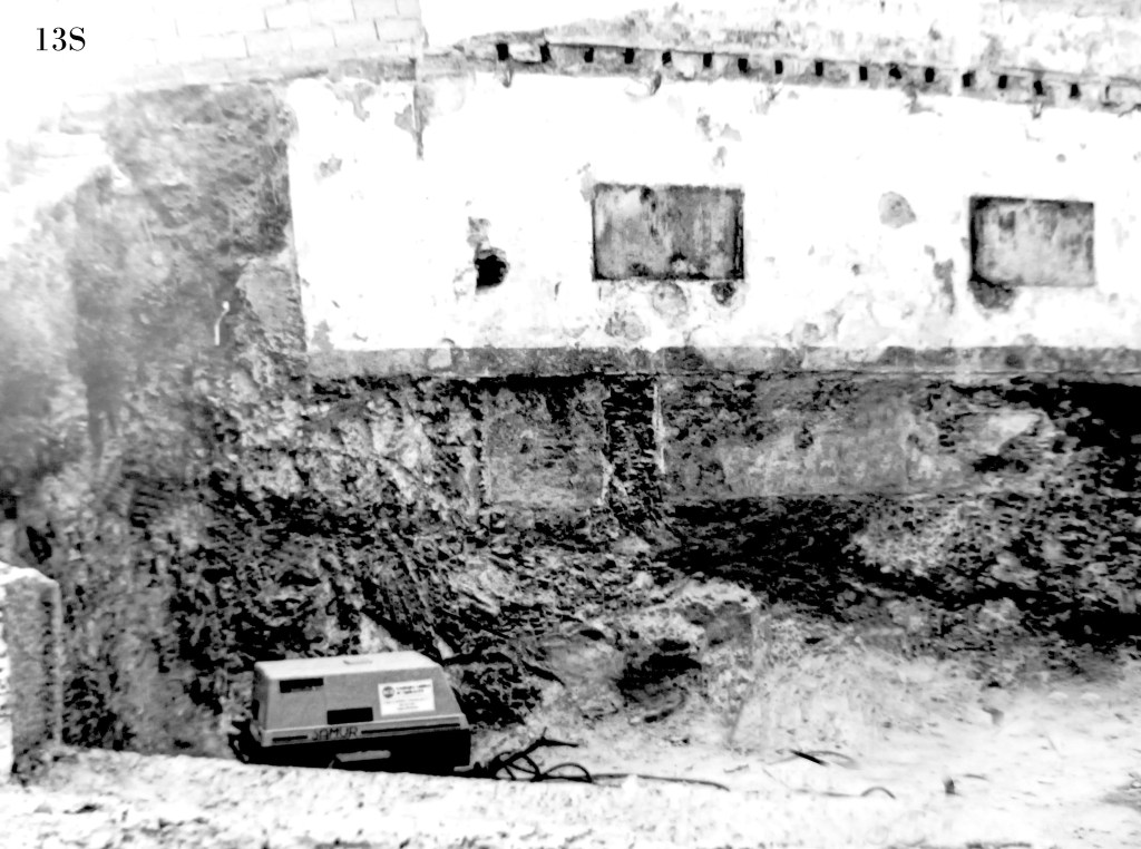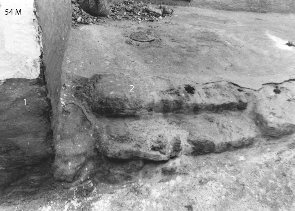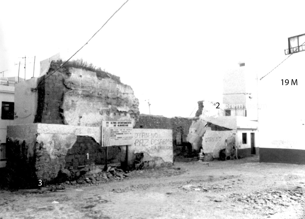Fot 1.- Esta imagen refleja uno de los momentos en que se realizaron excavaciones fuera del contexto de las practicadas en el terreno conocido como Puente del Noi. Y aparecen los mismos fenómenos que se han mostrado posteriormente en la excavaciones oficiales. El corte lateral muestra la linde con el terreno de nuestras excavaciones, donde, en otros momentos, se verán los materiales comunes de todo este recinto. La excavación se hizo con criterio aceptable a pesar de que el terreno no permitía cuadricular con exactitud las catas donde van a ir apareciendo la gran variedad de materiales comunes a todo este espacio.