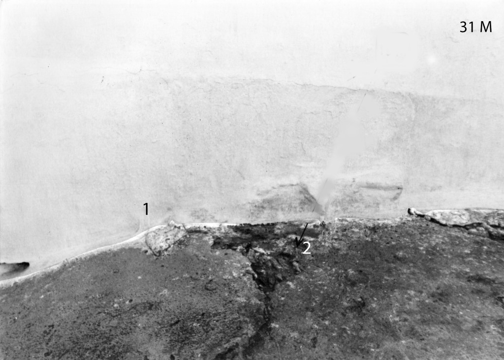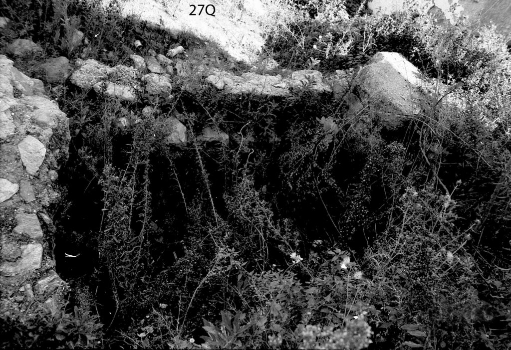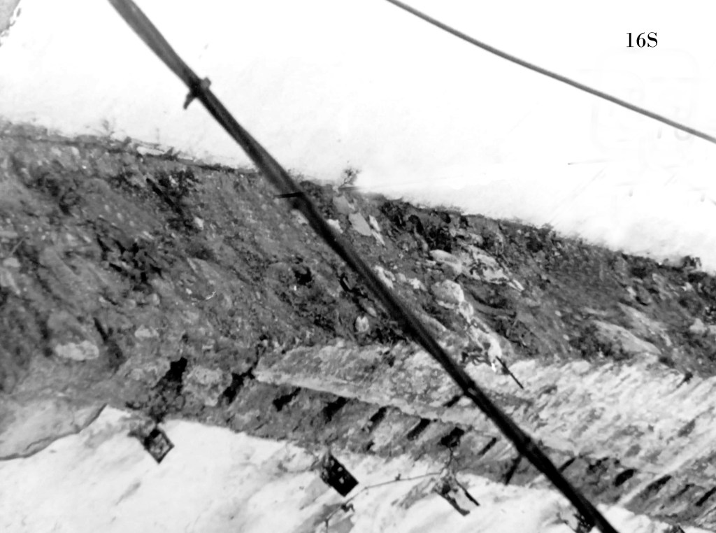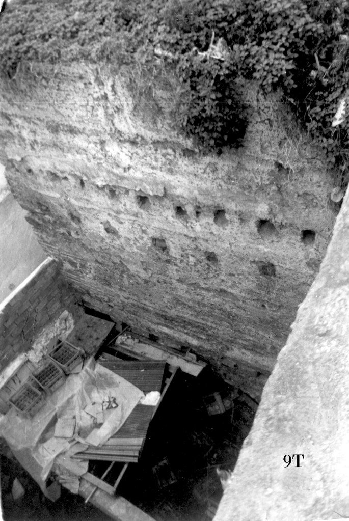 Foto 3.- En este corte entre terrenos de distintos propietarios, podemos observar el mismo fenómeno del sector B; Los restos de la tumba profunda nos muestra en su cabecera cómo una tumba nueva posterior la ha interrumpido. Lo que demuestra, en parte, que la intensidad de localizaciones de tumbas en esta parte antigua del terreno, era tan densa como las antes citadas.