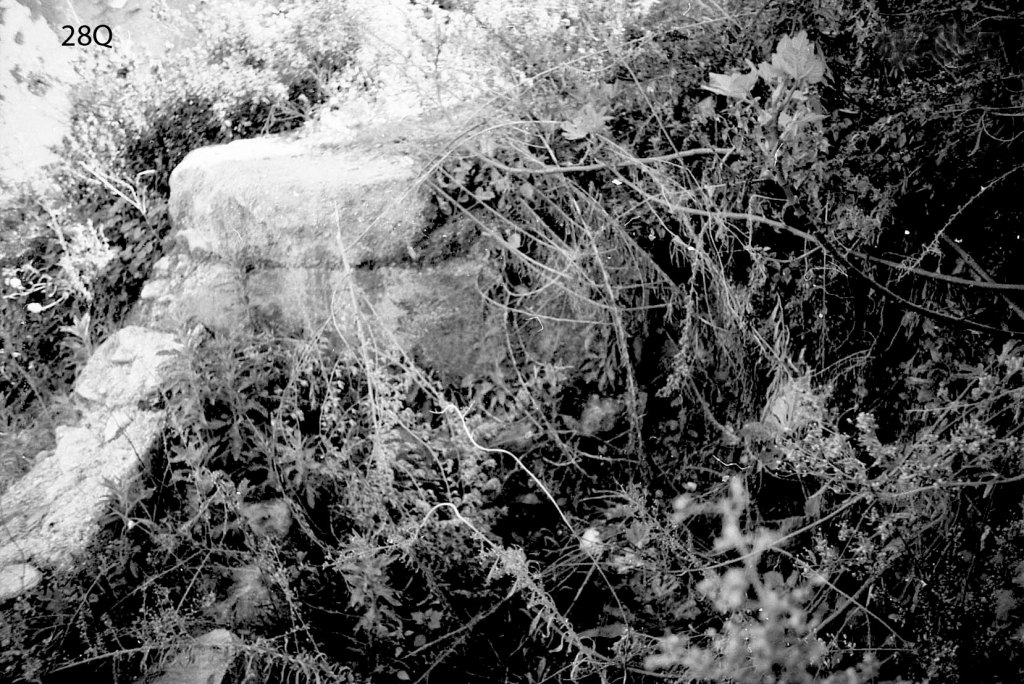 Foto 8.- Aquí mostramos uno de los trozos de piedra caliza que, probablemente, formara parte de una de las esquinas del monumento funerario en este terreno. Se observa como una especie de canal sobre el que podría colocarse uno de los leones.