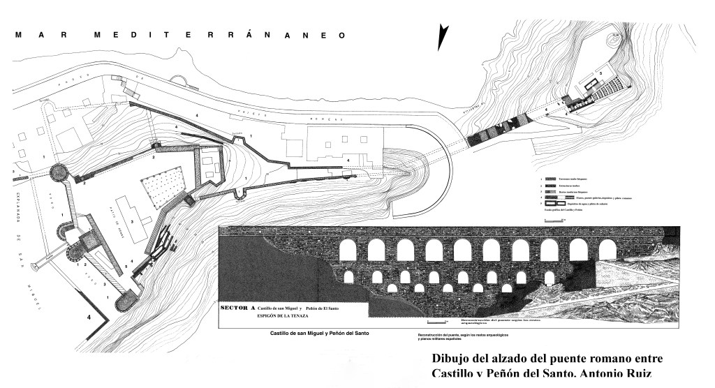 Los elementos que se nos han presentado en este pequeño sector, casi todos se relacio-nan con el estacionamiento portuario. El sistema de muralla probablemente tuviera origen romano, reutilizado por las generaciones étnicas posteriores. Es comprensible que si los medie-vales previeron la penetración arrolladora del agua del mar, y construyeron lo que acabamos de ver en fotos anteriores, por la misma razón los romanos no habrían quedado en mejores situa-ciones ante tales eventos naturales. Por ello inducimos que debió existir un sistema de defensa contra las avalanchas del mar, y que éste debió seguir siendo utilizado por los medievales y mo-dernos.