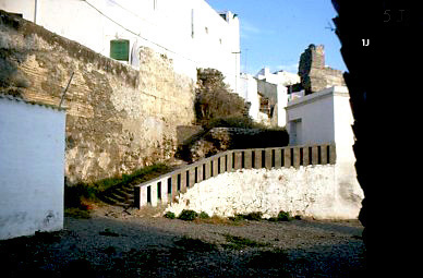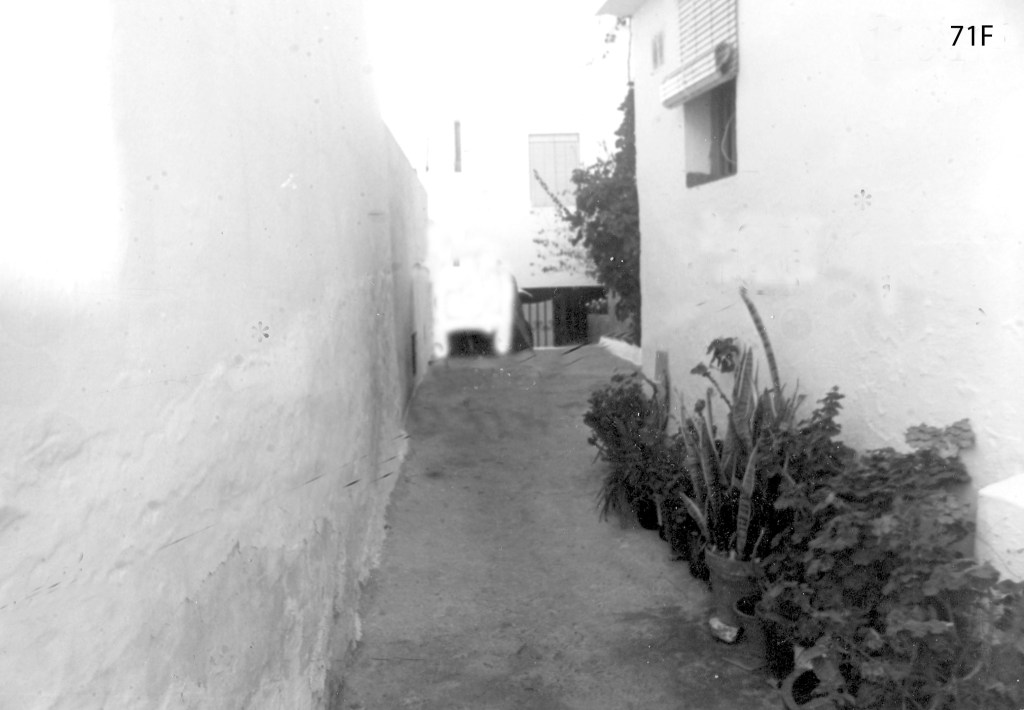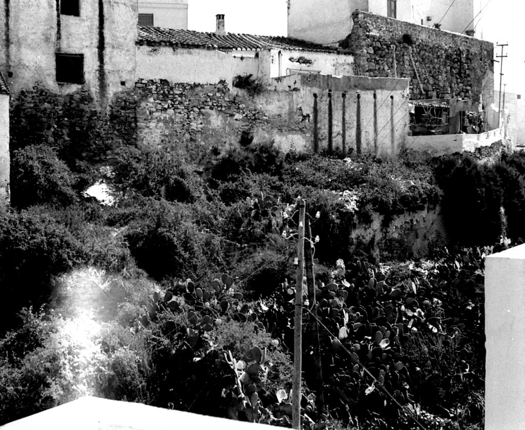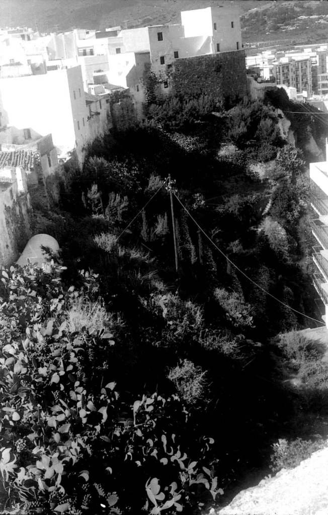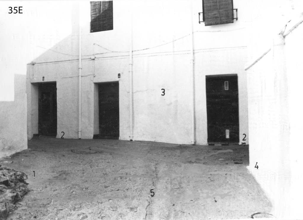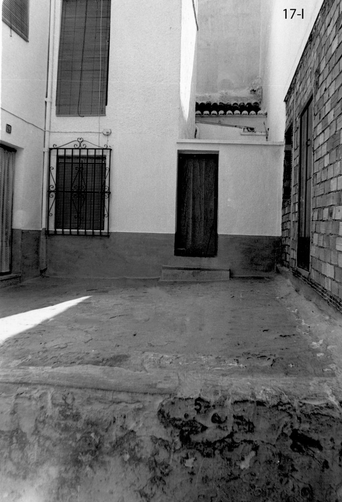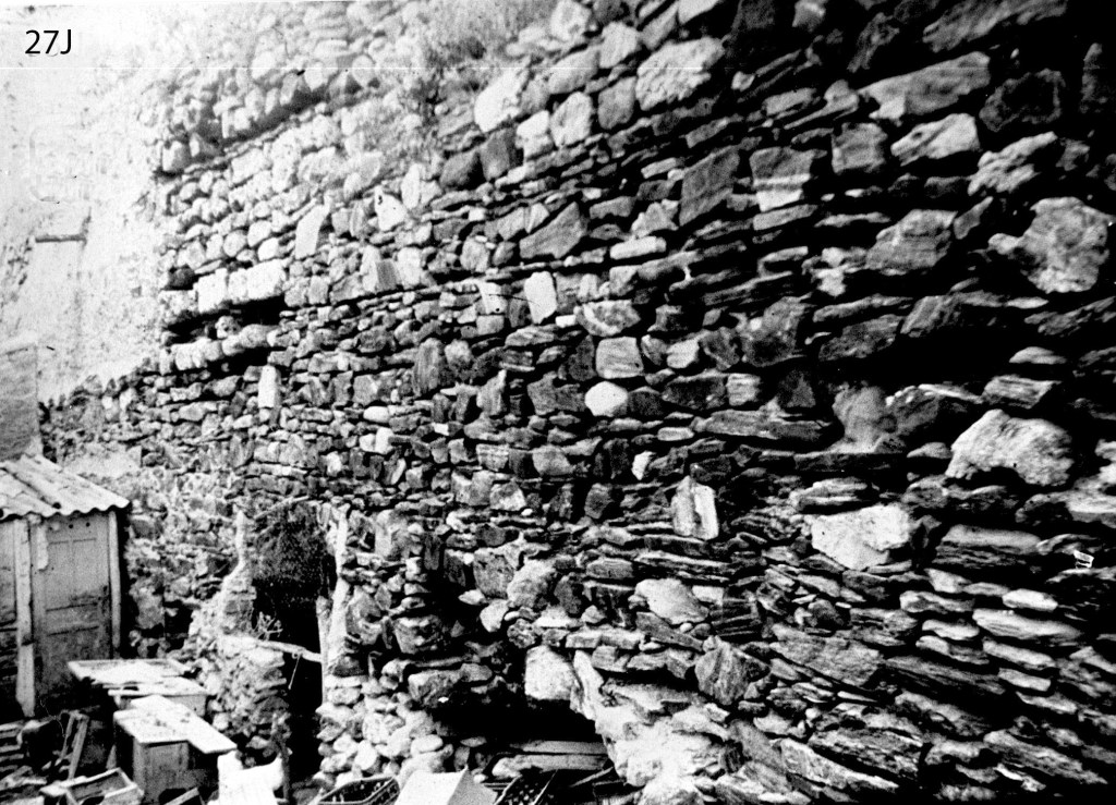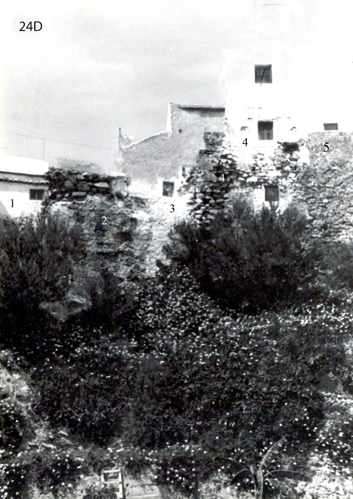 Así, desde la propia Avenida de Cala (fot. 27Y), pueden verse unos paramentos externos de casas, cuyos interiores muestran vestigios evidentes de su antigua función (fot. 28Y). El grosor es de 1,20 m.