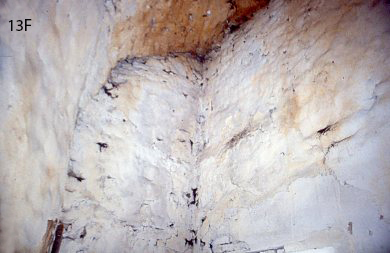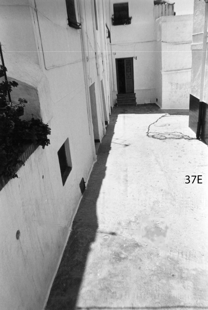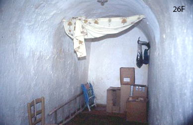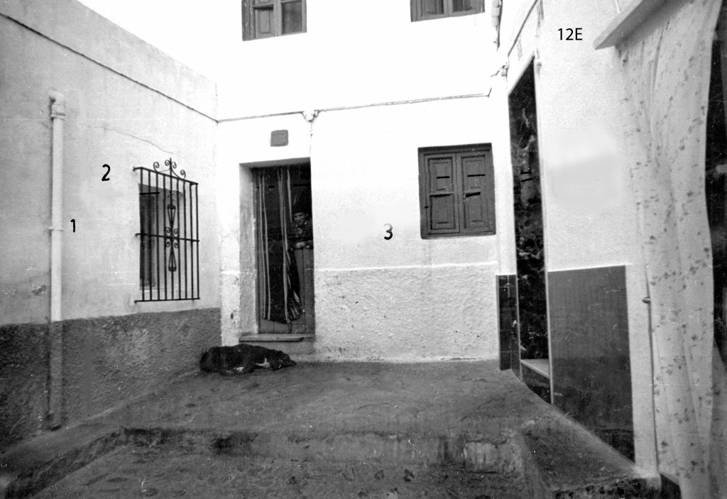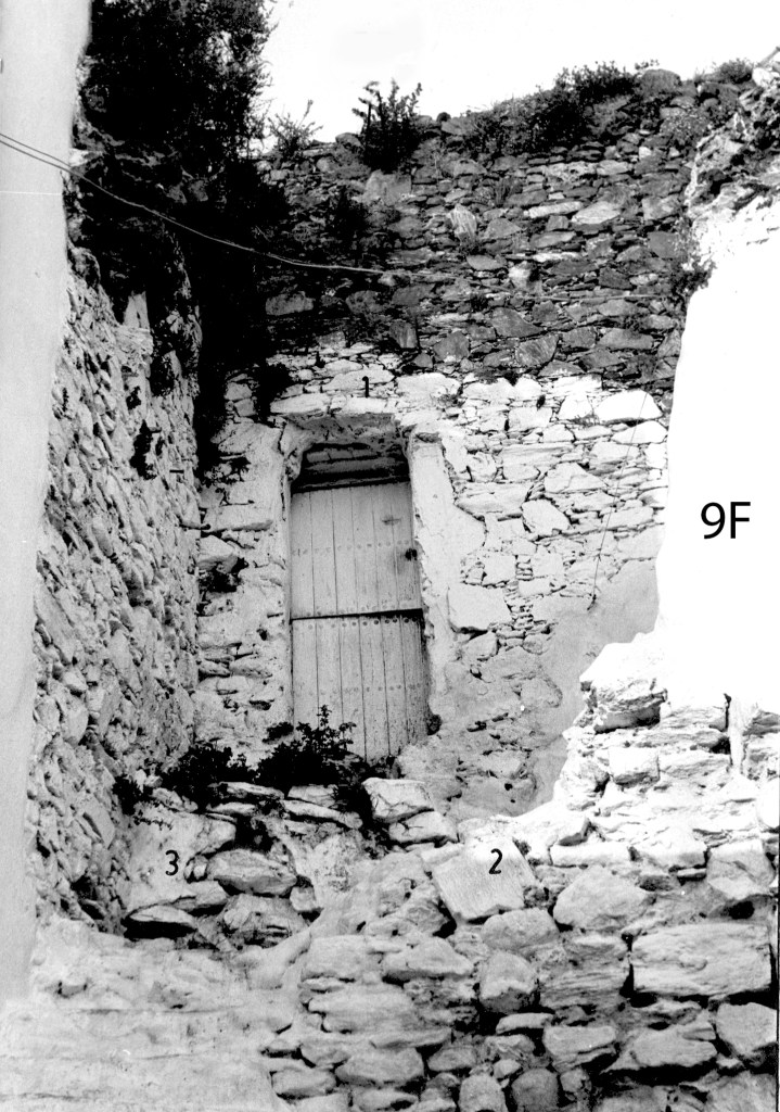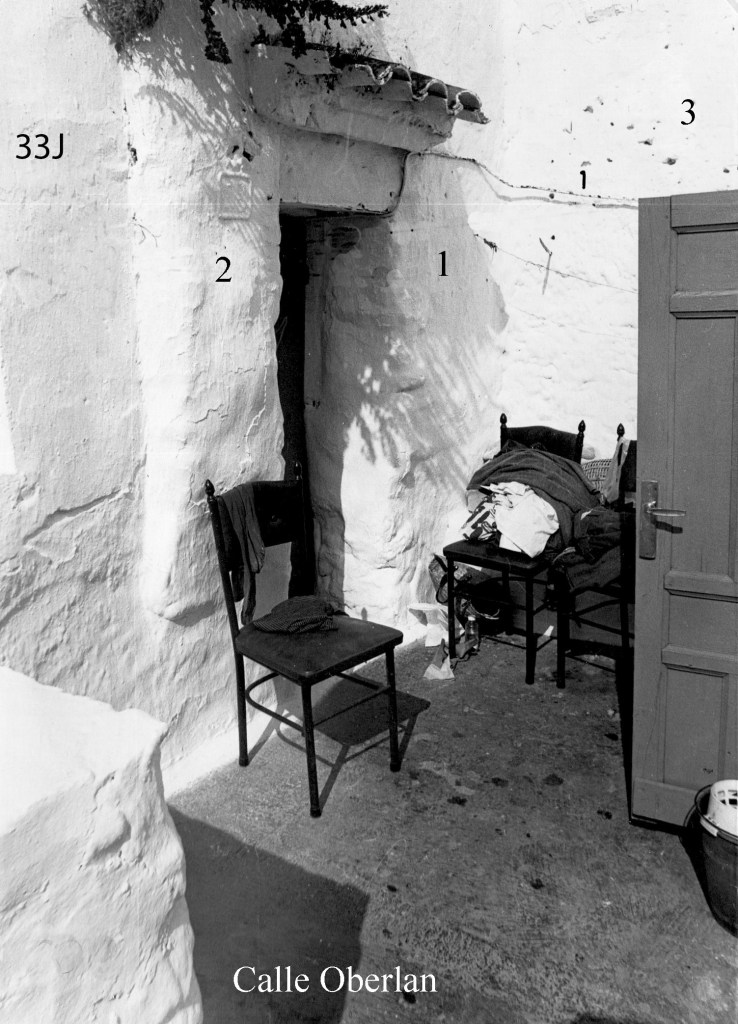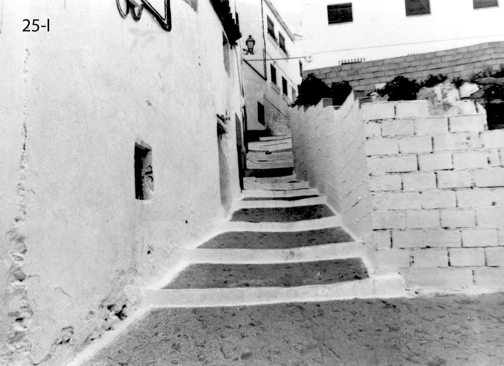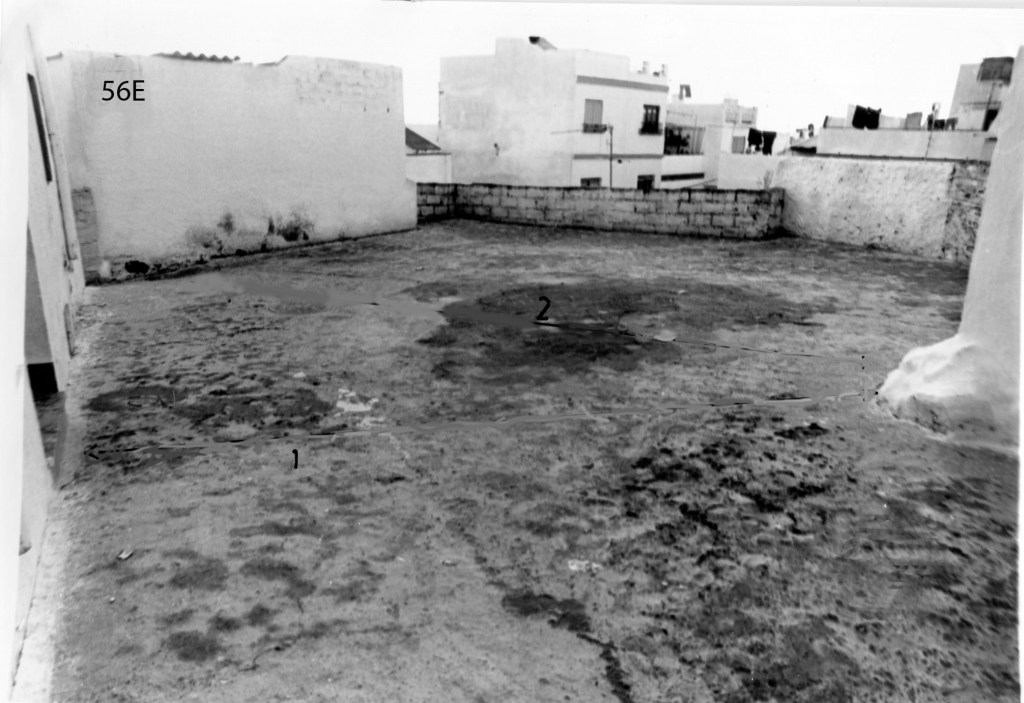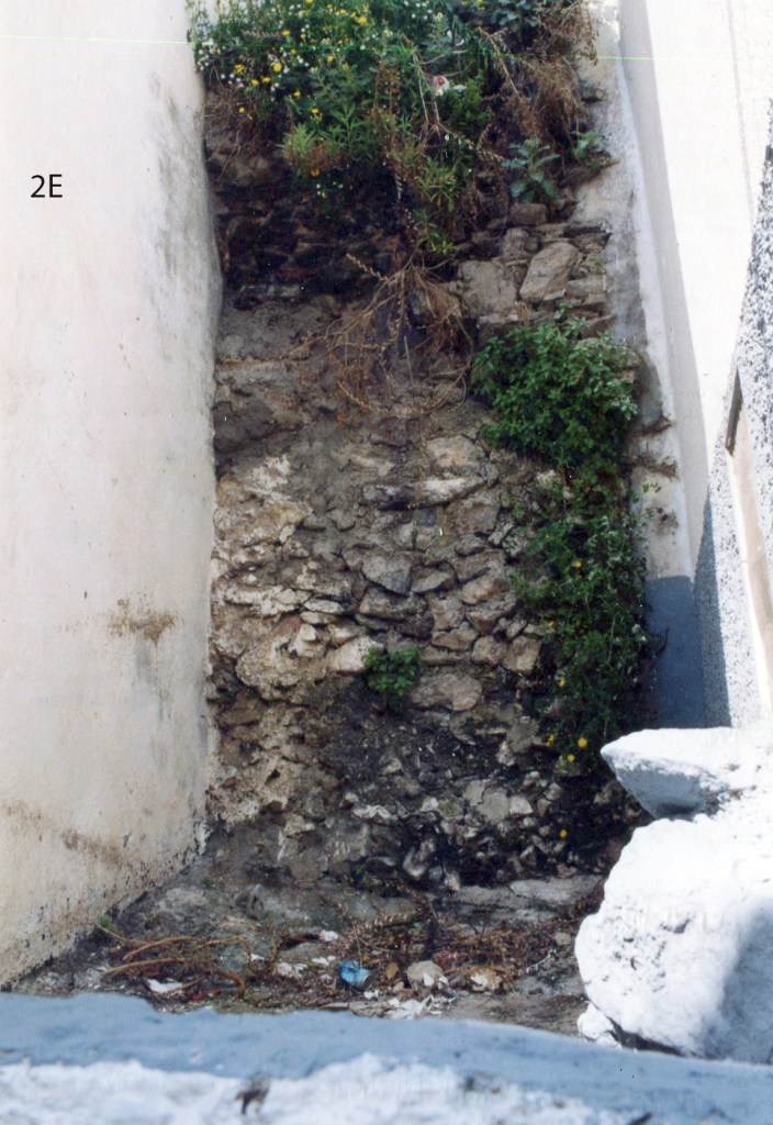 Así, desde la propia Avenida de Cala (fot. 27Y), pueden verse unos paramentos externos de casas, cuyos interiores muestran vestigios evidentes de su antigua función (fot. 28Y). El grosor es de 1,20 m.