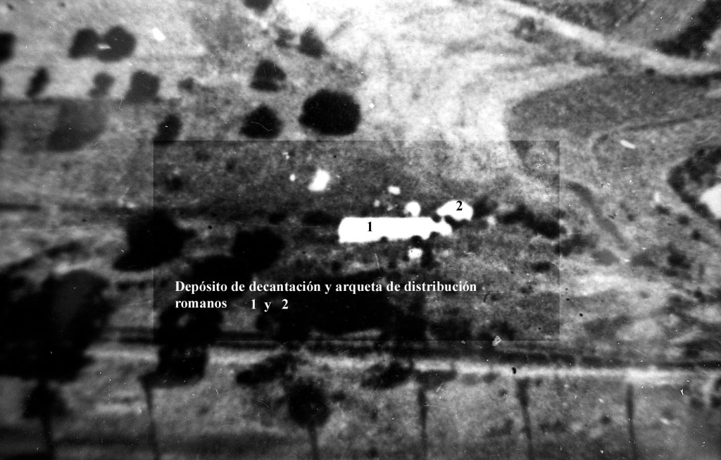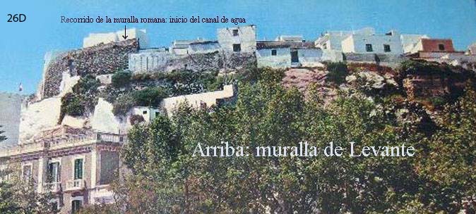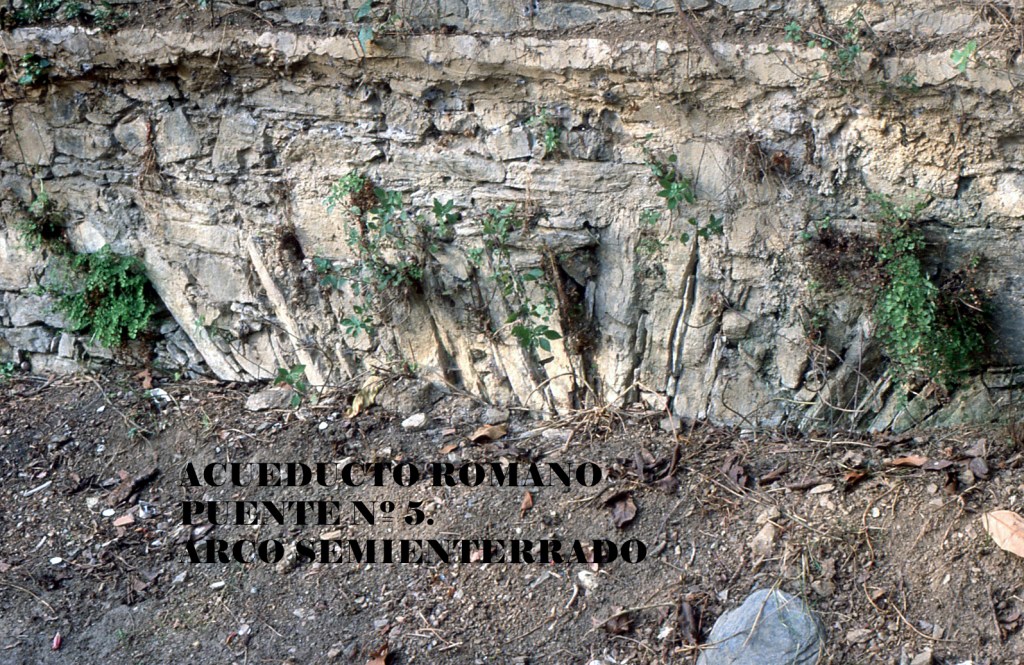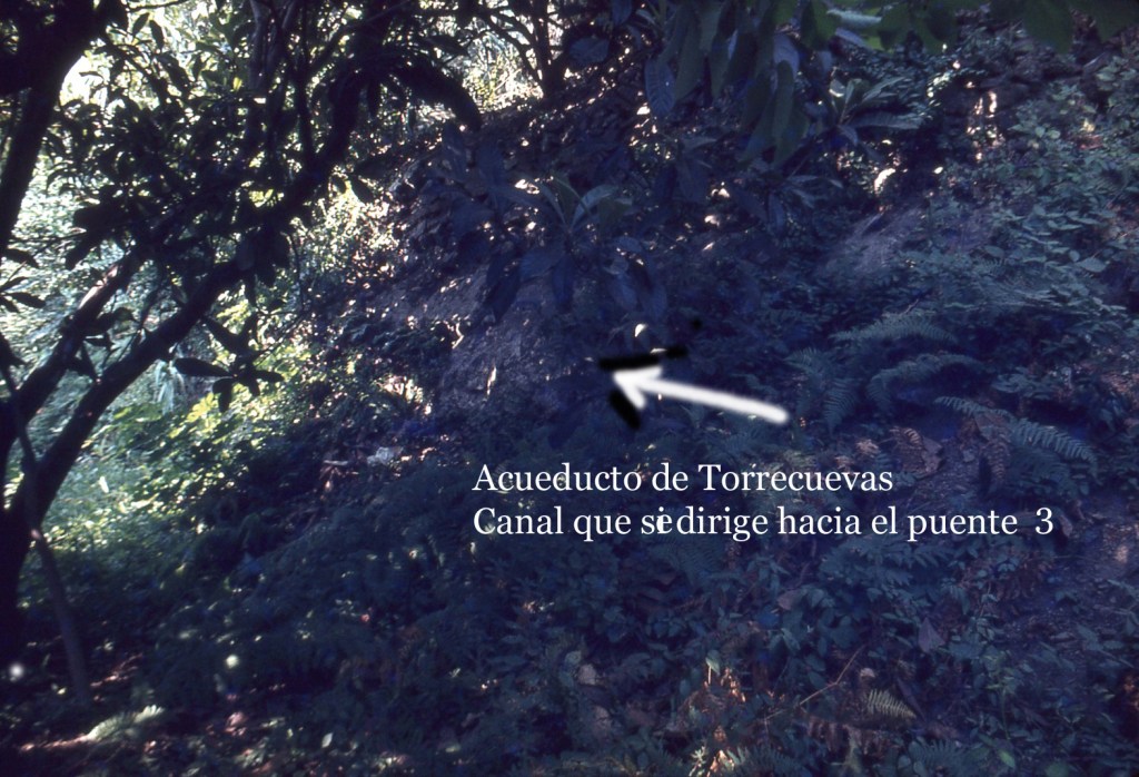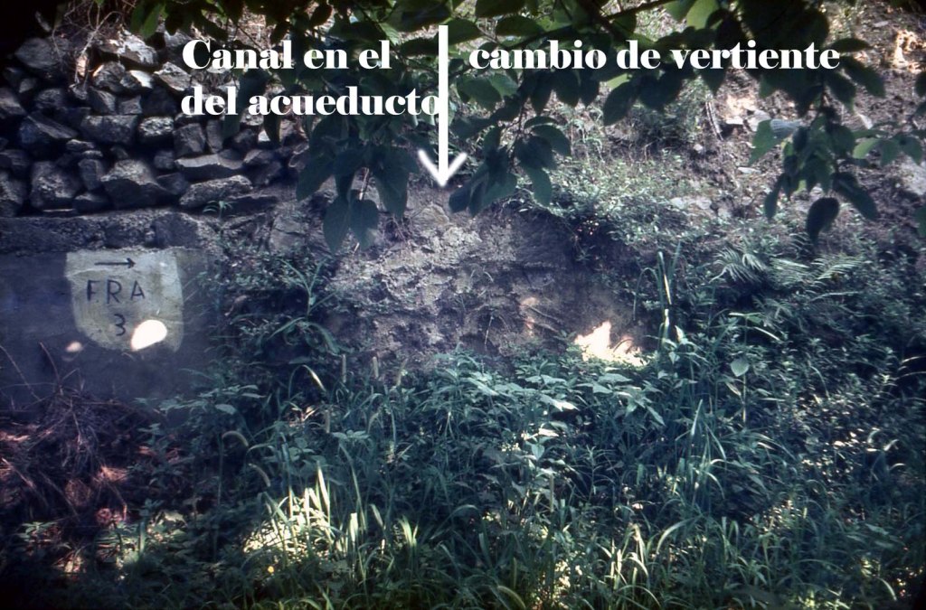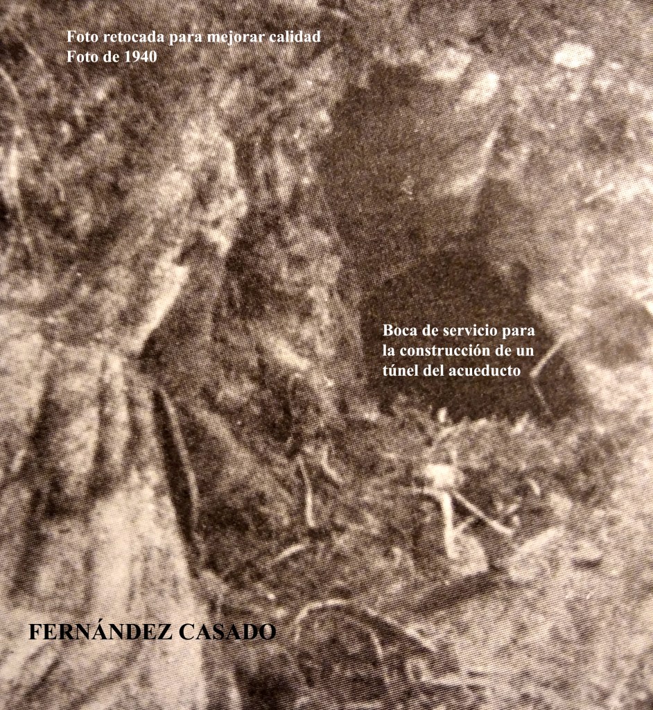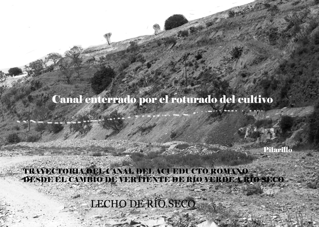 Ya en la fotografía 4Y, sobre un muro romano de contención que sujeta la calle Derrum-badero, puede observarse un agujero no artificial, sino antiguo y deformado, por donde se deja ver el canal de conducción de aguas que hasta la Huerta de los Müller llegaba.
