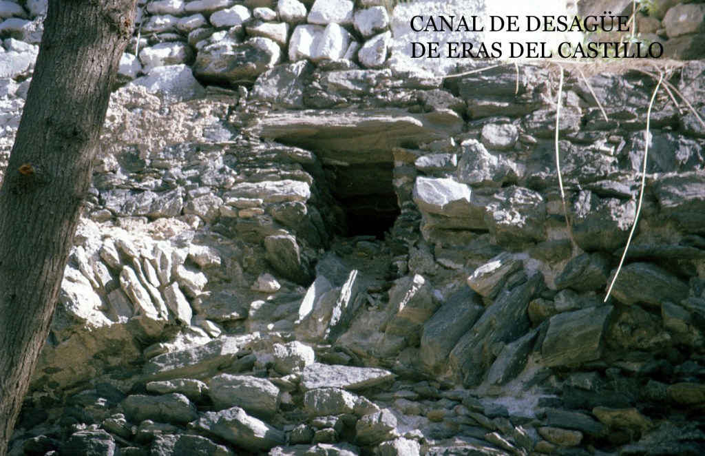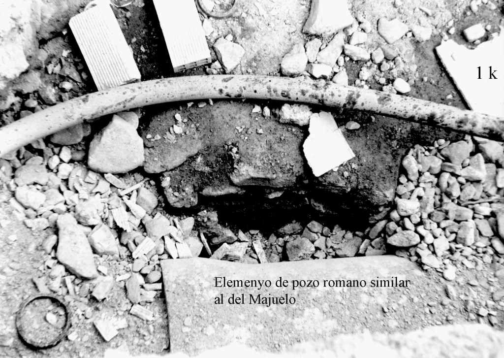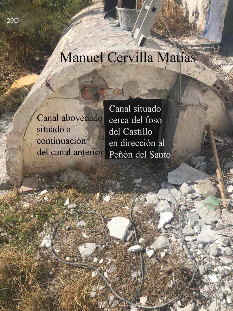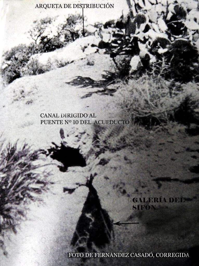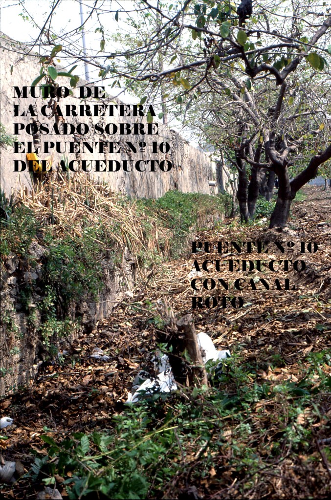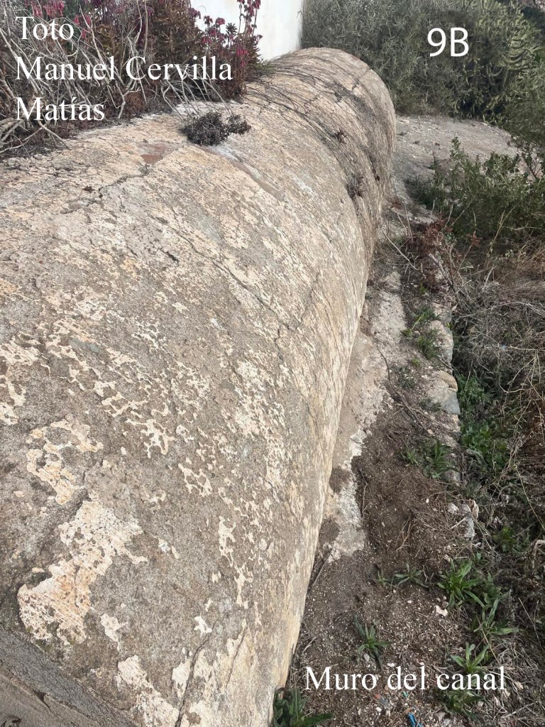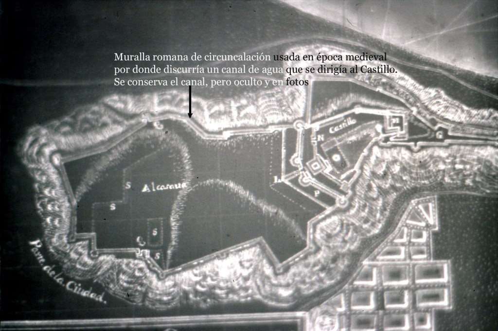 Ya en la fotografía 4Y, sobre un muro romano de contención que sujeta la calle Derrum-badero, puede observarse un agujero no artificial, sino antiguo y deformado, por donde se deja ver el canal de conducción de aguas que hasta la Huerta de los Müller llegaba.