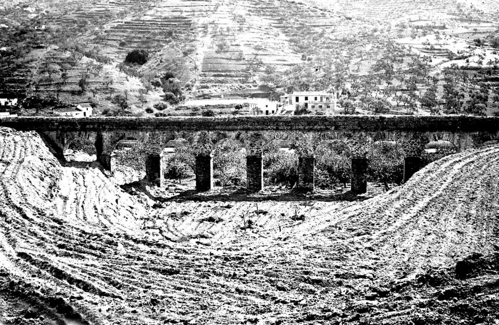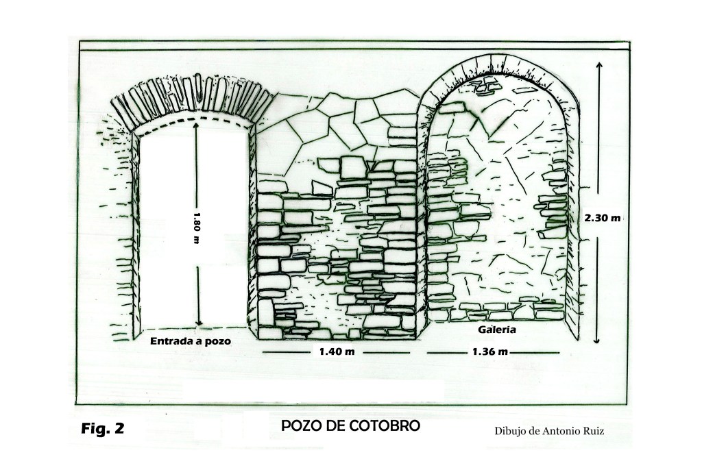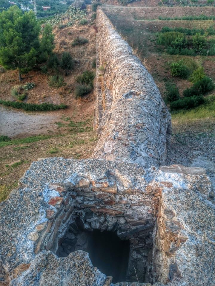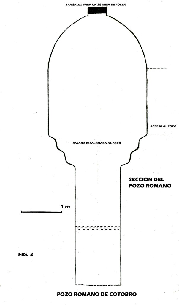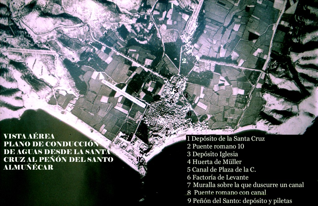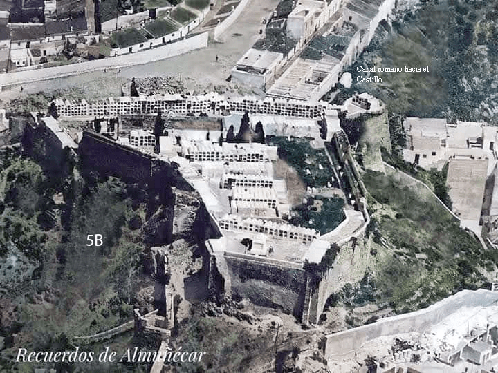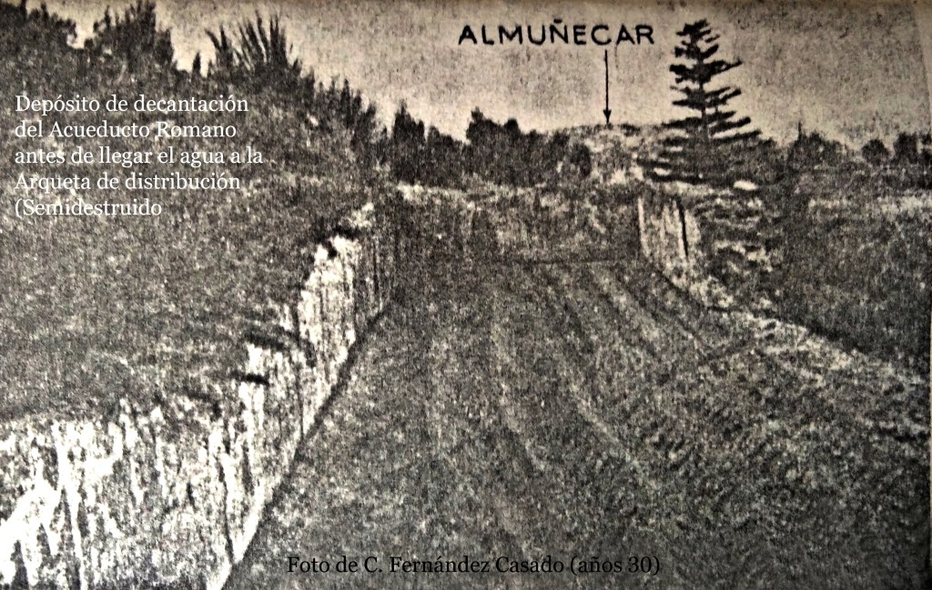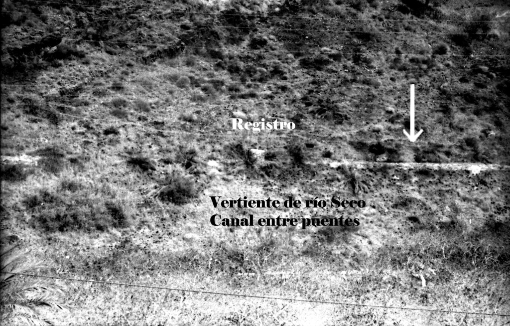 Ya en la fotografía 4Y, sobre un muro romano de contención que sujeta la calle Derrum-badero, puede observarse un agujero no artificial, sino antiguo y deformado, por donde se deja ver el canal de conducción de aguas que hasta la Huerta de los Müller llegaba.