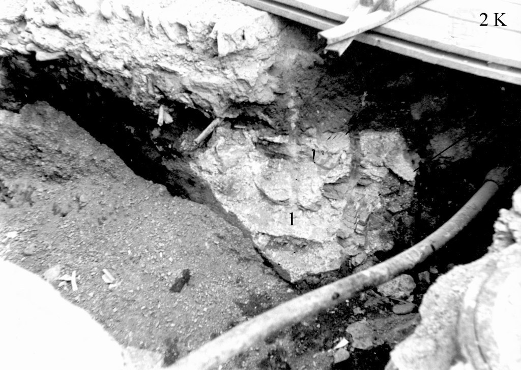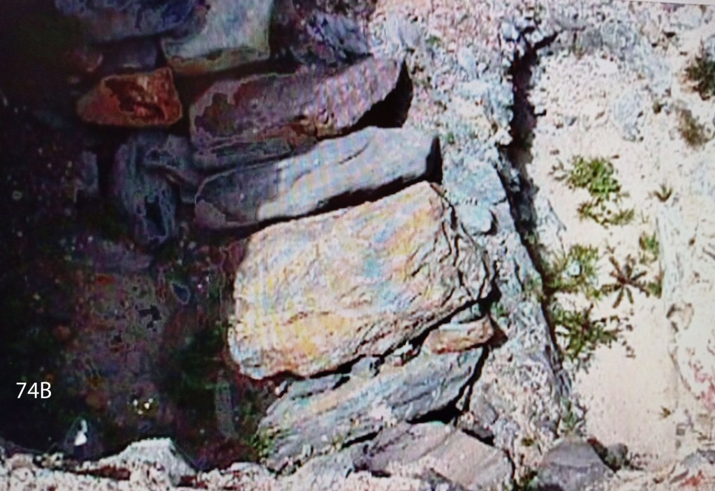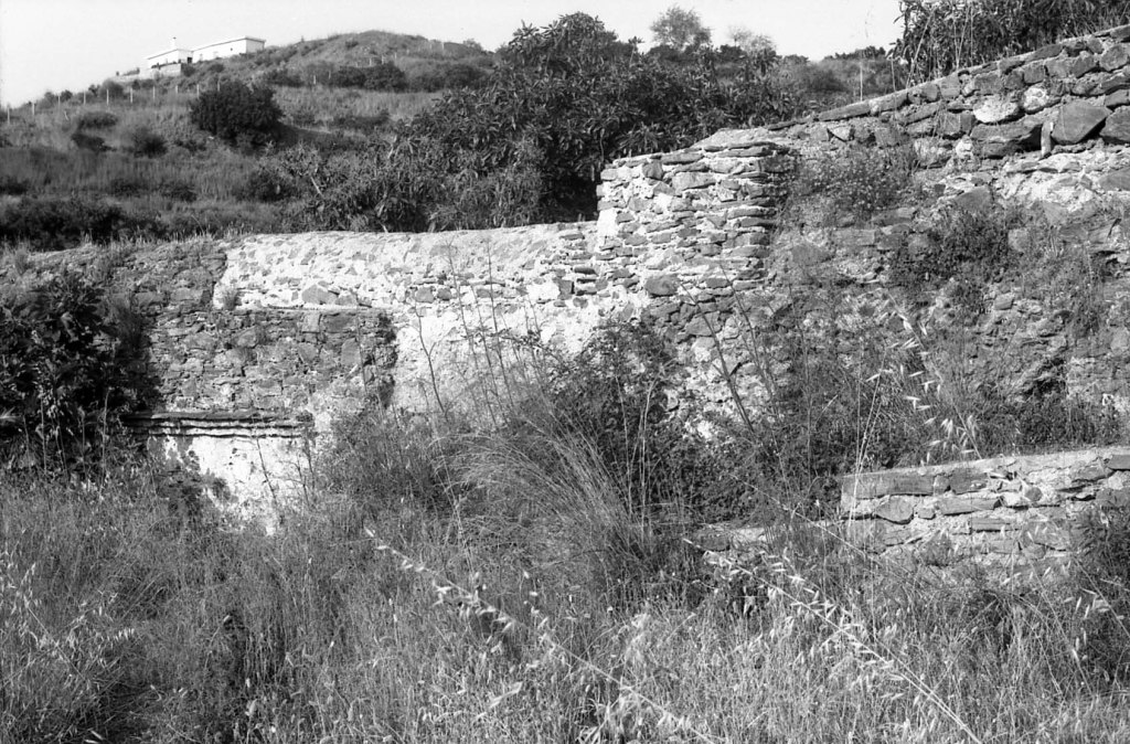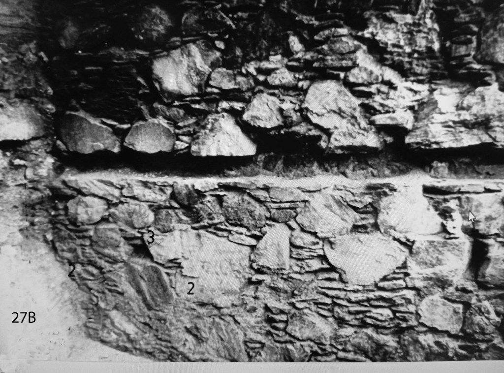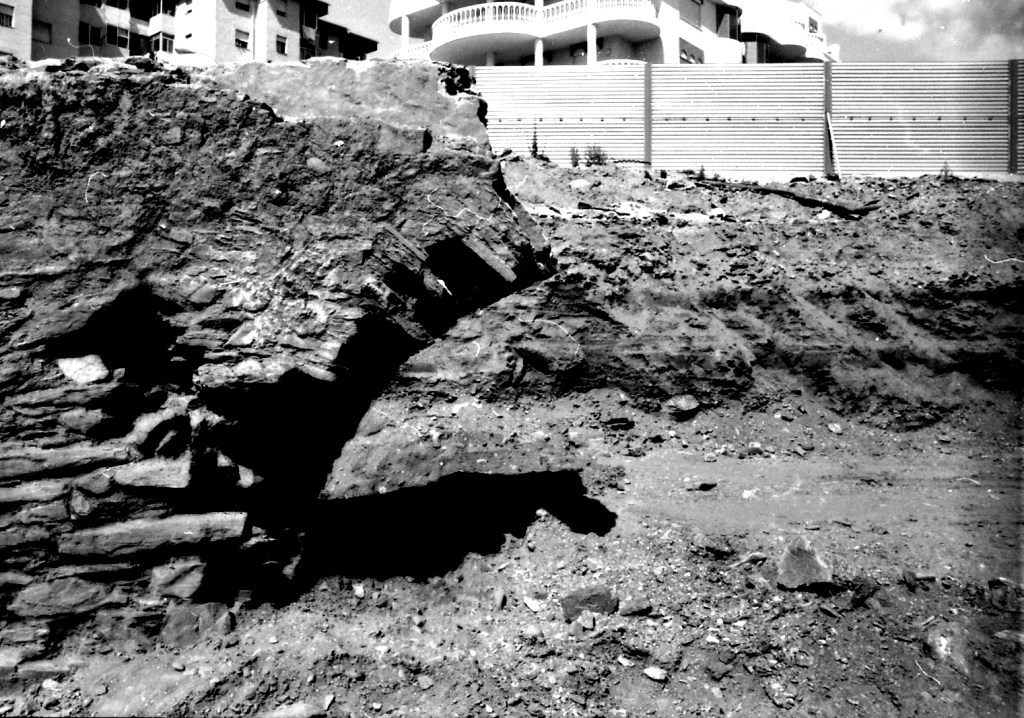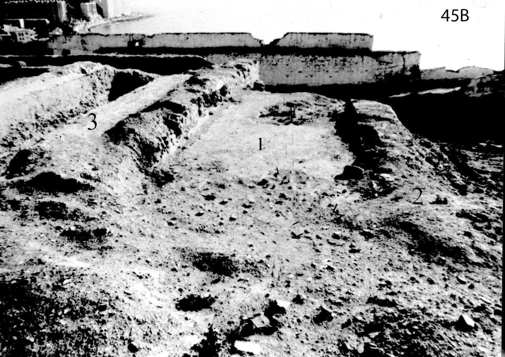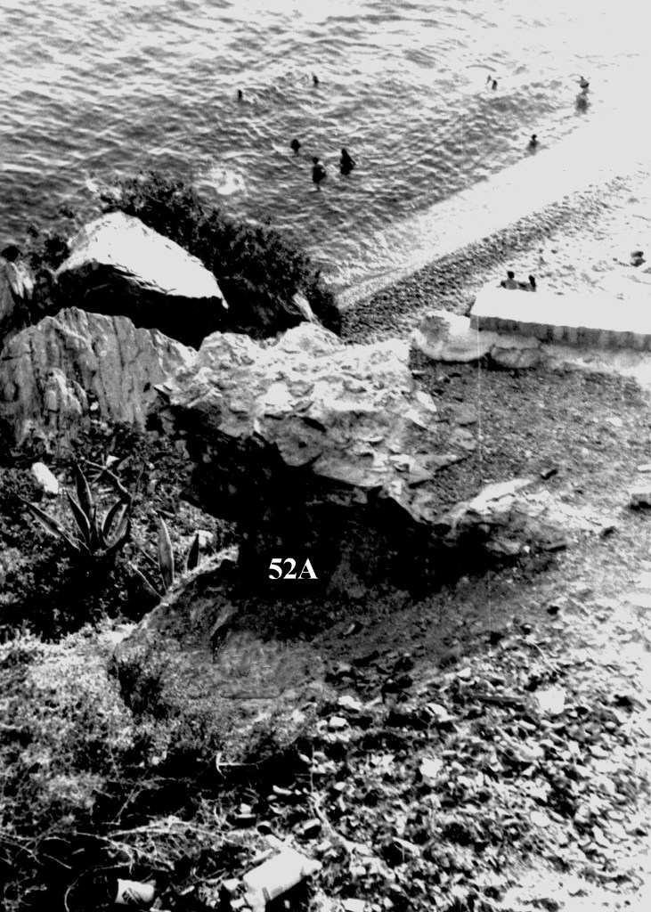 Los detalles de mayor envergadura de los cimientos que se suponen aquí, se tienen bien patentes en las fotos 39Y y 40Y, donde se observa la rotura de las estructuras murales o base de las edificaciones hídricas que aquí han existido. De forma más detallada aún, se pueden ver fotos de precisión, en que se observa la rotura, comprobada por la irregularidad del aparejo, analizable a simple vista (fots. 40Y; 42Y).