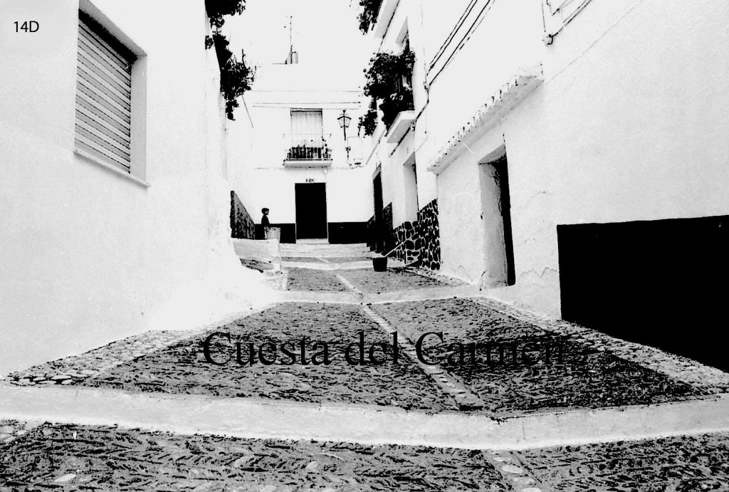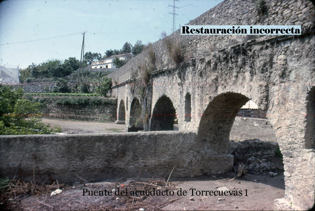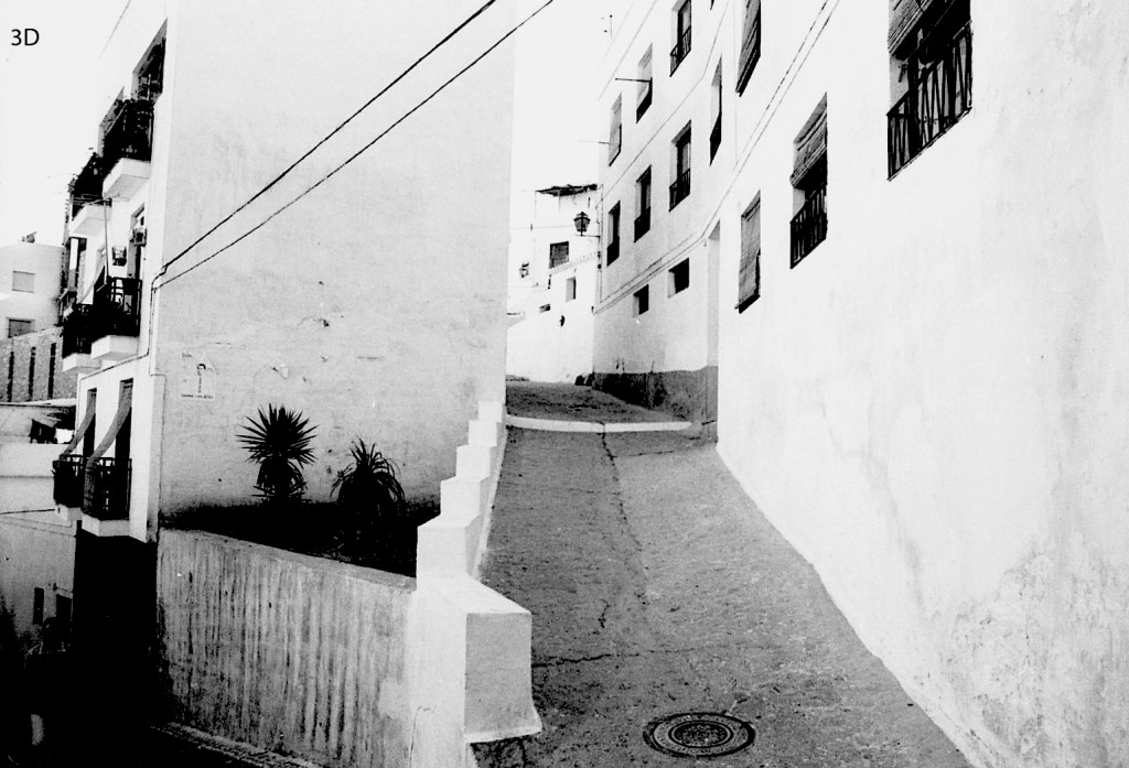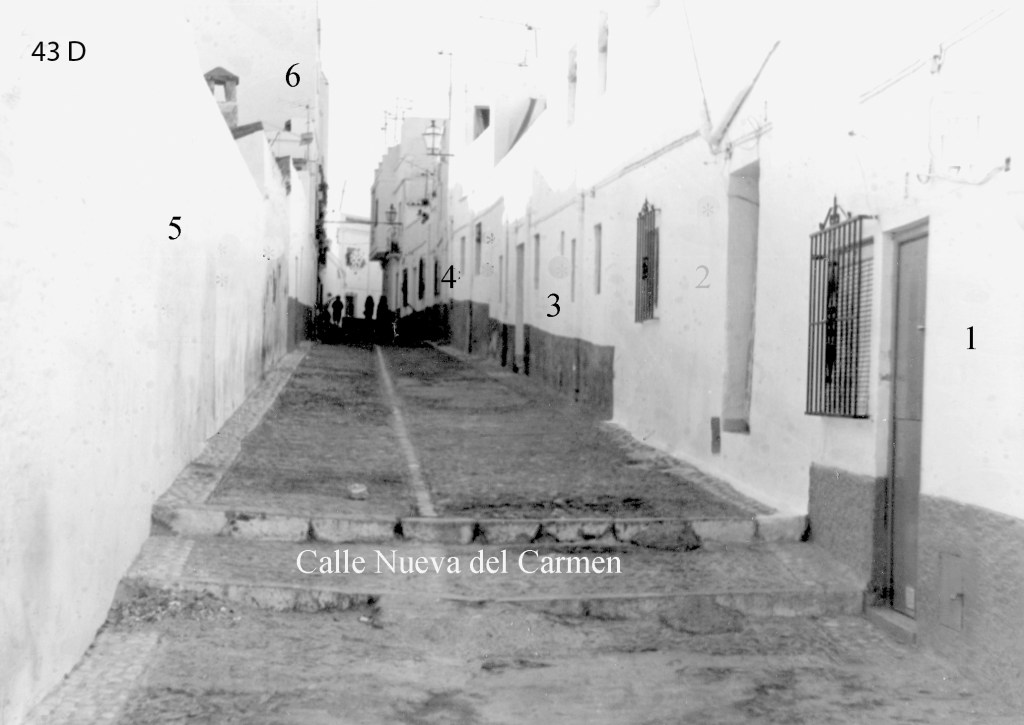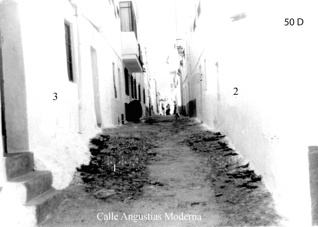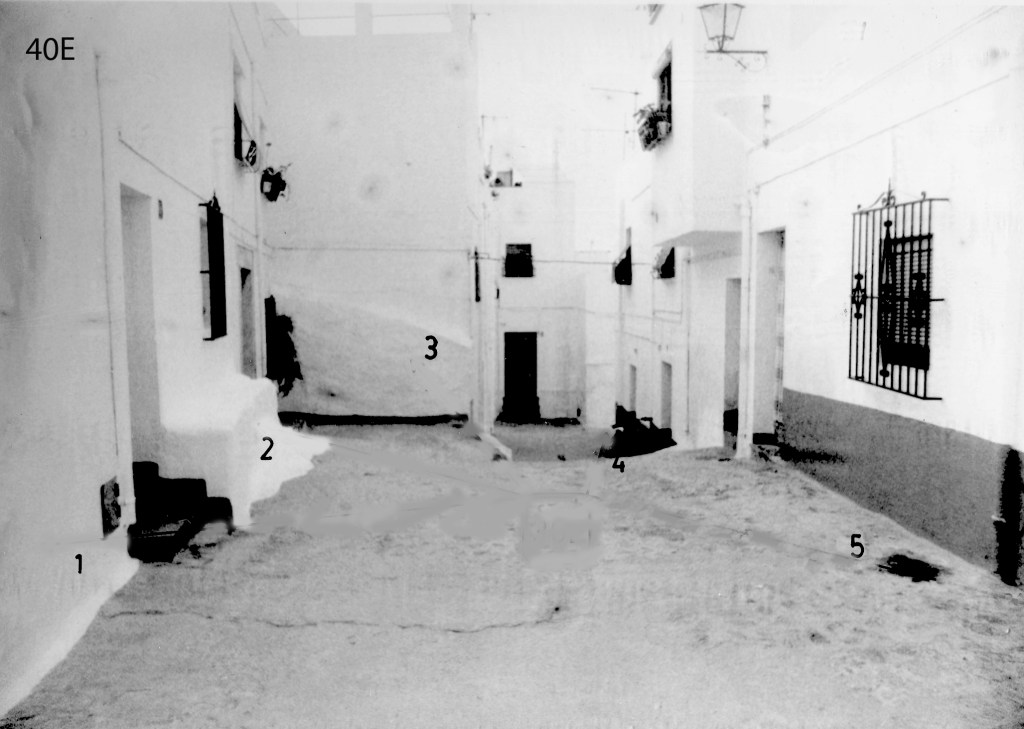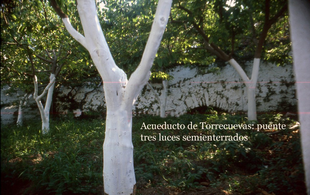 En línea con la trayectoria del acueducto en su entrada a la ciudad, situados frente a lo que fue Puerta de Granada (fot. 21Y), con un fuerte desnivel, ya que entre el punto más bajo, cota 11,70, y el más alto, cota 25,55, no hay más de 40 m lineales. Tales estructuras que aquí se ve, no han podido ser analizadas en sus interiores. Tan sólo nos remitimos a indicar lo que significa para este estudio el trazado de esta calle: fuerte desnivel que debe superar el acueducto para llevar el agua a su destino: el depósito terminal, situado donde ya se ha indicado: solar de la Iglesia Parroquial y zonas anejas.