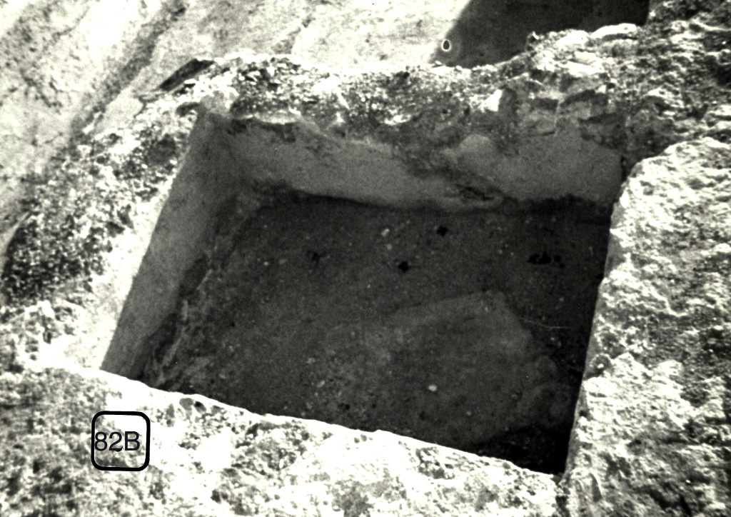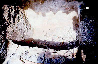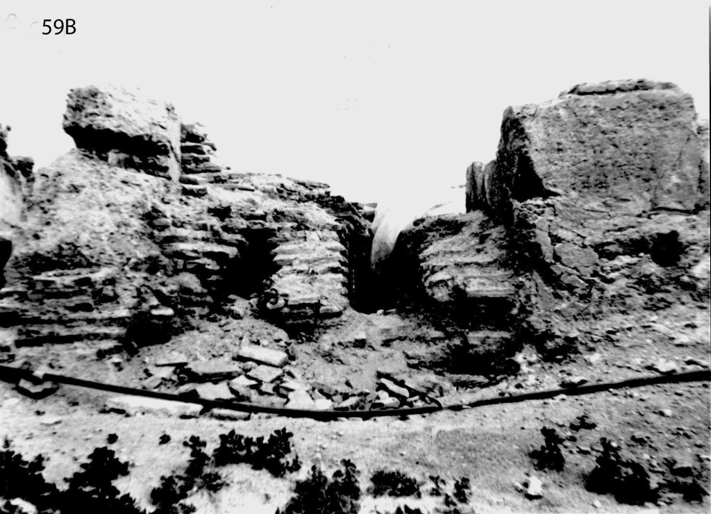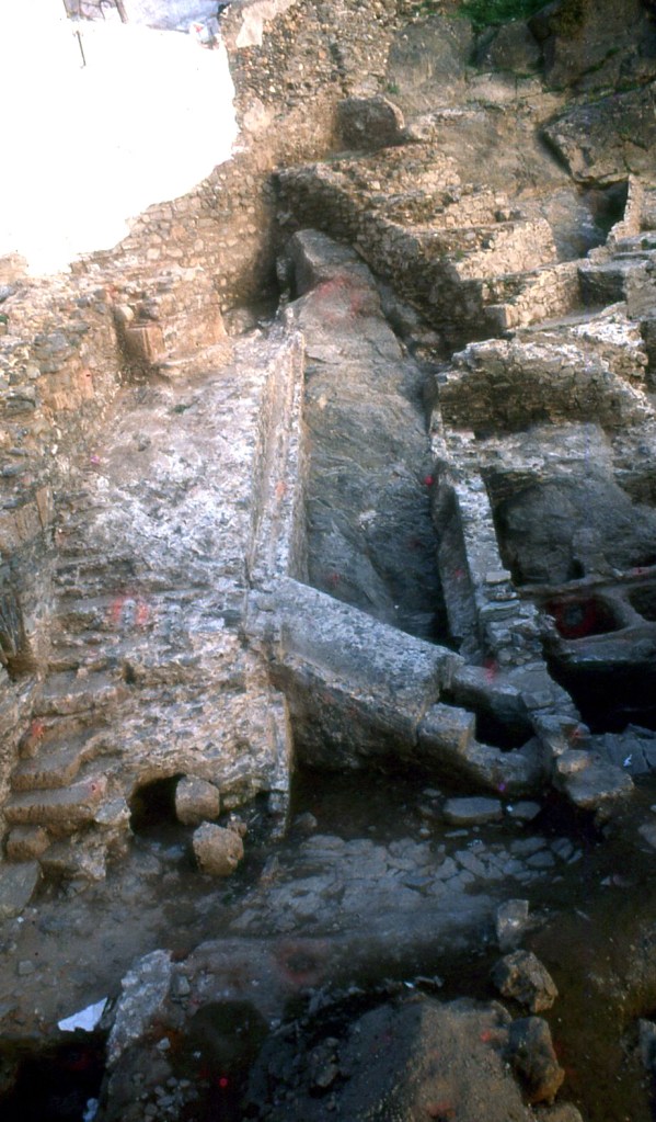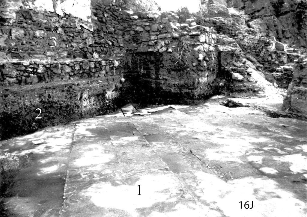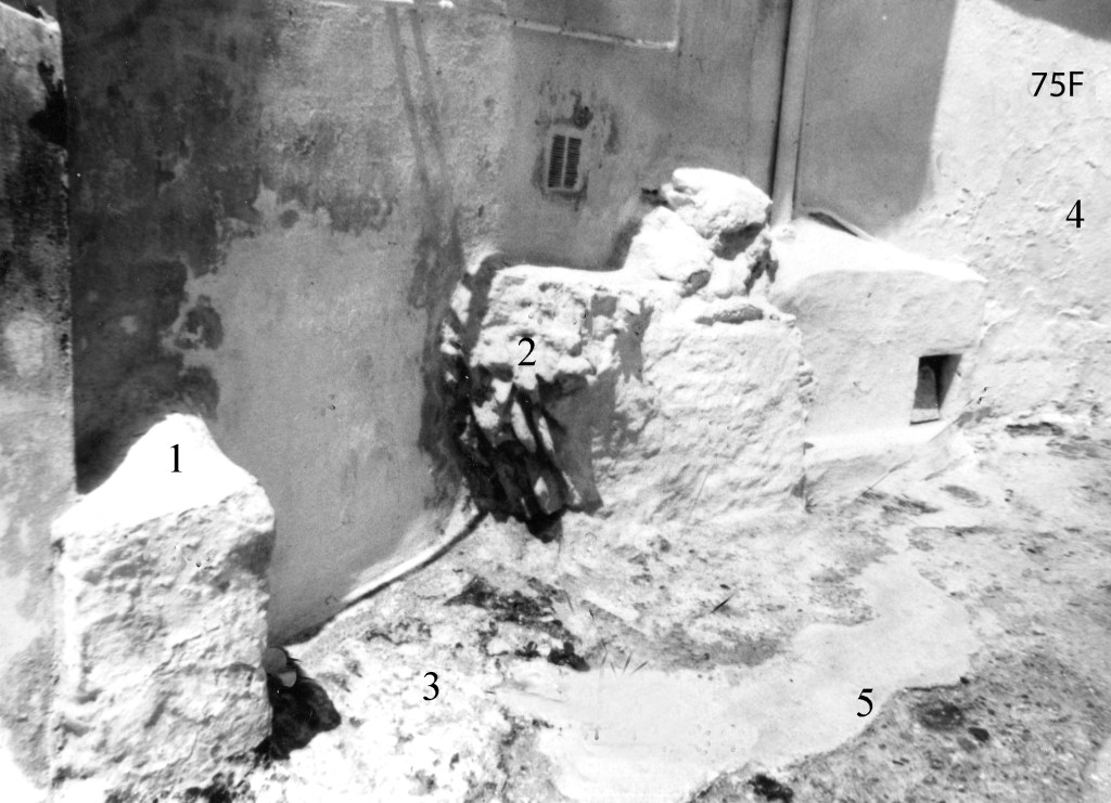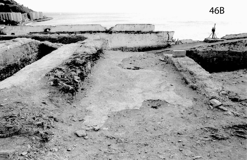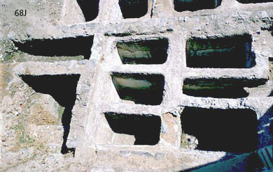 La imagen 70Y muestra una de las pilas, revestida de estuco y de forma semicircular. Los muros laterales, con sólo sus puntos de arranque, podían haber servido para formar los puntos de apoyo de la techumbre.