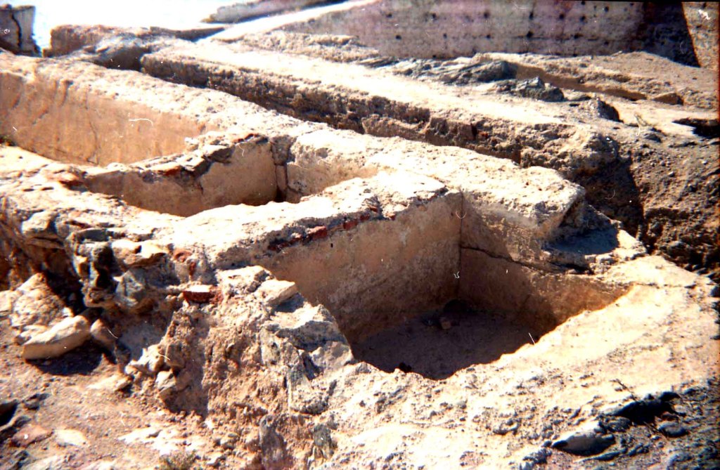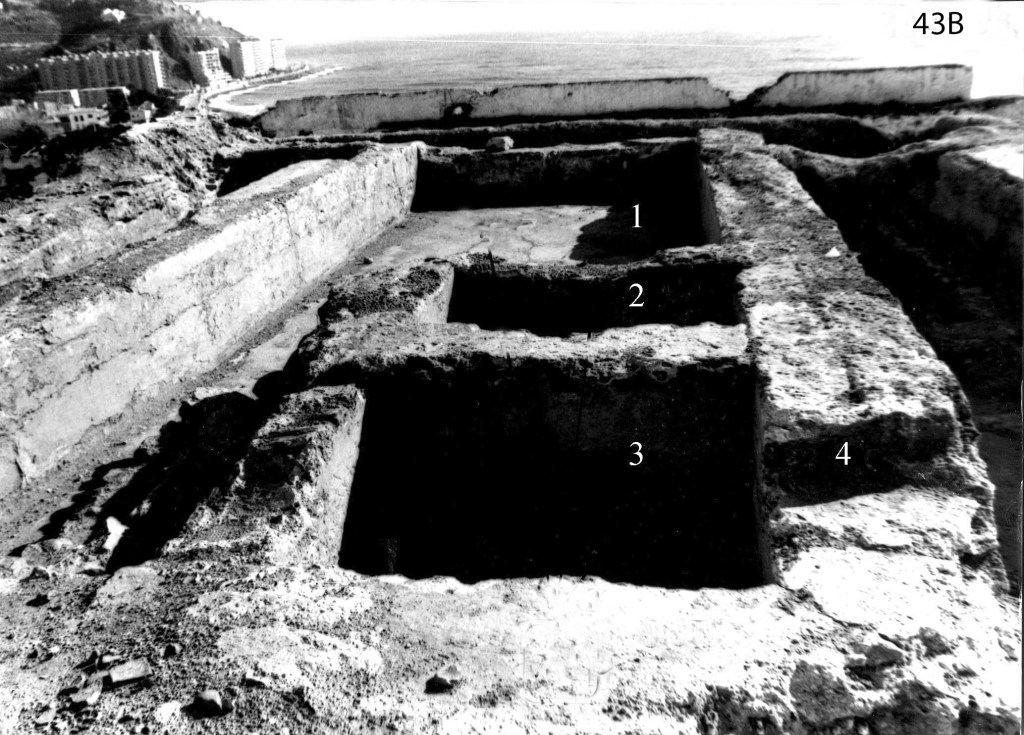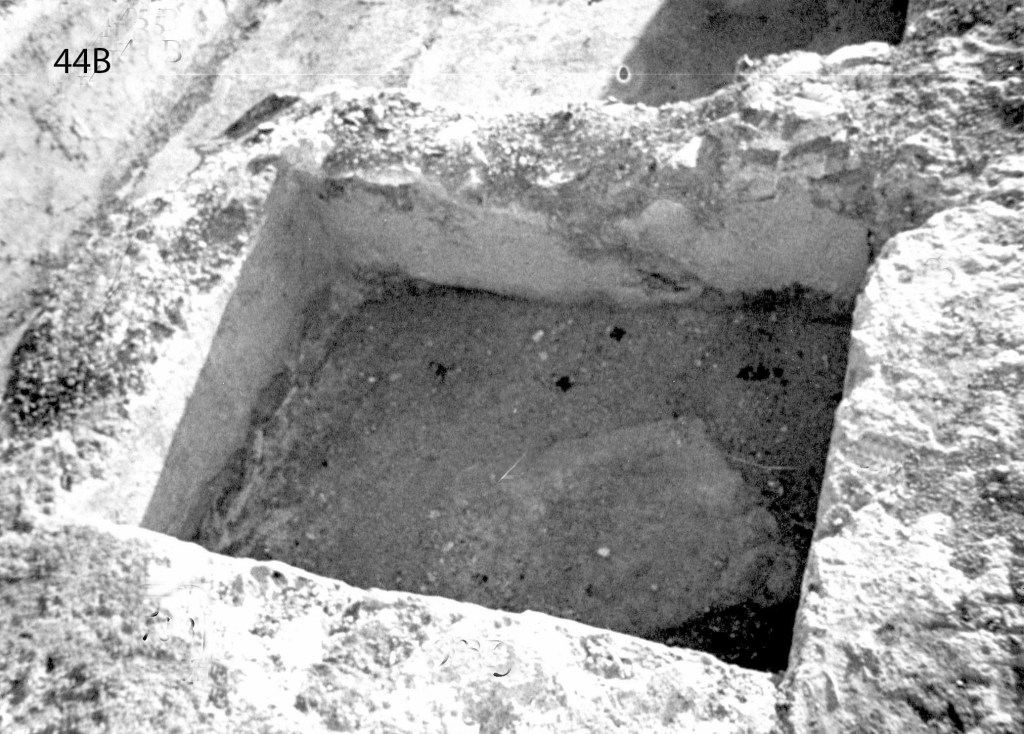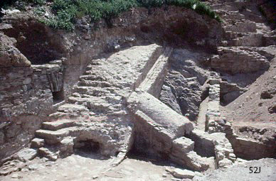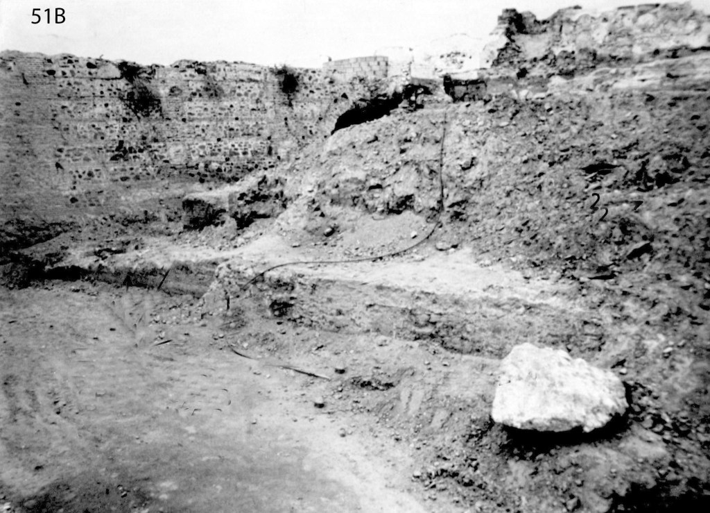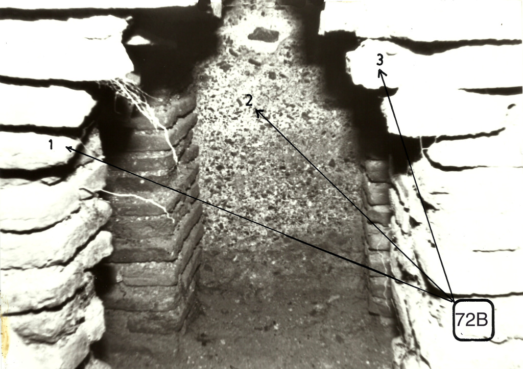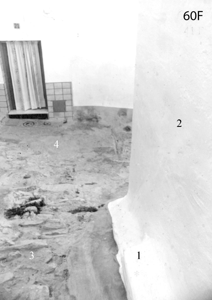 La imagen 70Y muestra una de las pilas, revestida de estuco y de forma semicircular. Los muros laterales, con sólo sus puntos de arranque, podían haber servido para formar los puntos de apoyo de la techumbre.