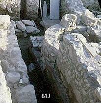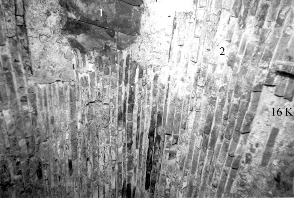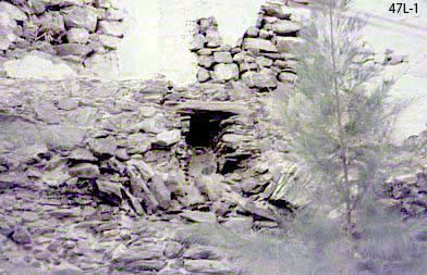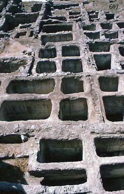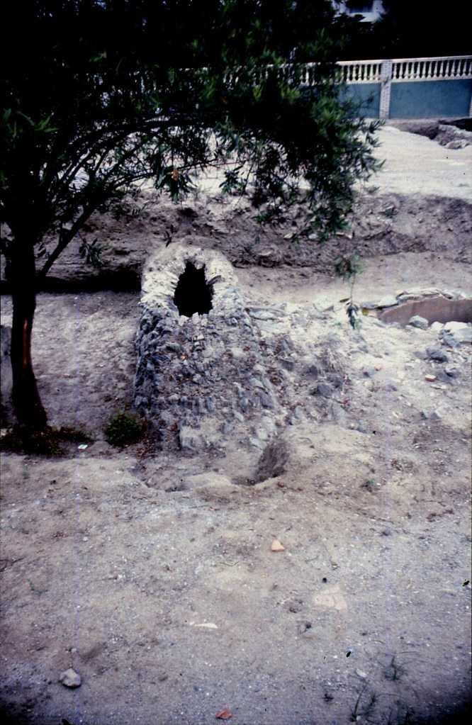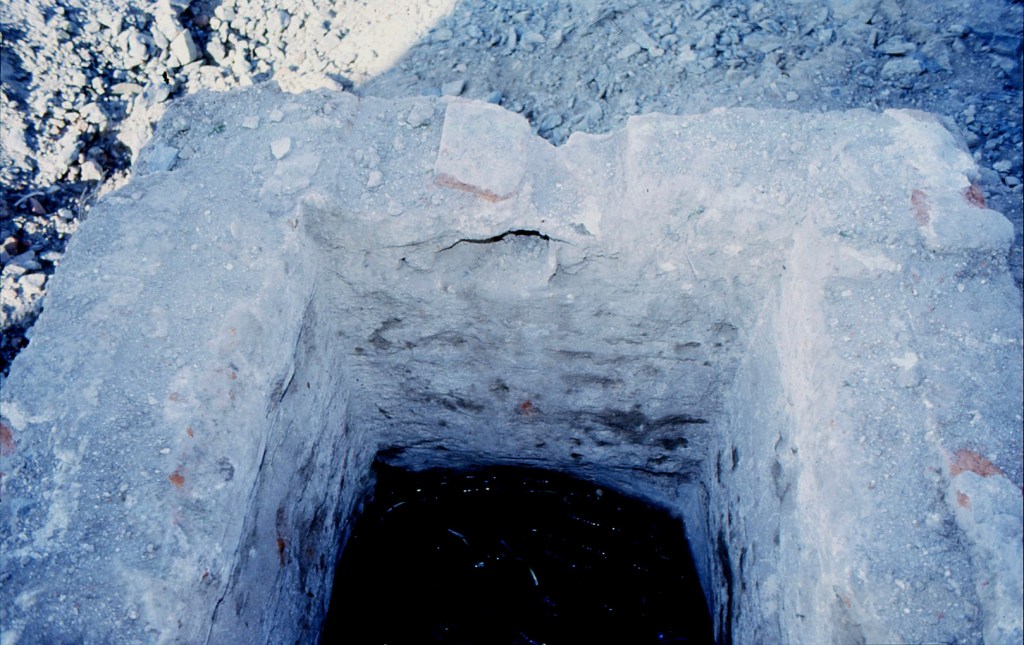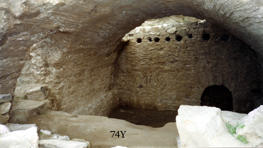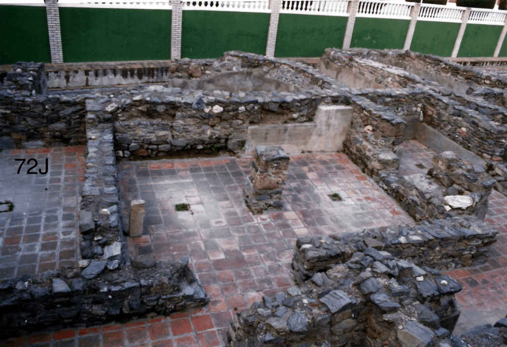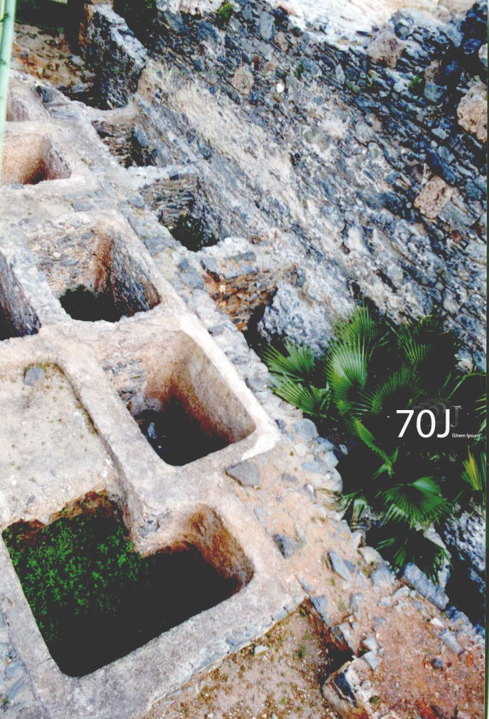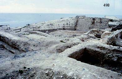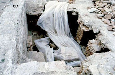 La imagen 70Y muestra una de las pilas, revestida de estuco y de forma semicircular. Los muros laterales, con sólo sus puntos de arranque, podían haber servido para formar los puntos de apoyo de la techumbre.