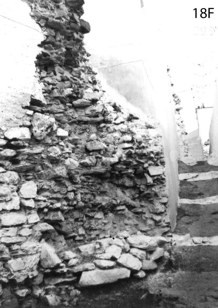 Por deterioro del revestimiento moderno, que se ha desprendido en parte, ha quedado al descubierto el aparejo externo de un muro de estructura y técnica romanas, como bien se puede observar en 17Y y 18Y, donde se distingue perfectamente la capa moderna caída y las piedras que conforman el aparejo de opvs incertvm en su interior.