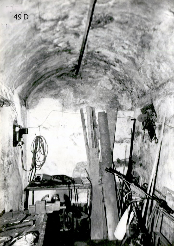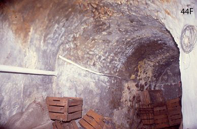 Al final de tal paso artificial, se observa cómo en algunos puntos se dejan ver restos de muros romanos que han tenido probablemente otra función, que ignoramos (fot. 4Z,2). En su parte derecha se observa un paramento levantado con piedra toba y un espacio que ha debido ser una nave (fot. 4Z,4,6) por las medidas que presenta. La anchura del pasillo disminuye (fot. 4Z,5), y al fondo se observan: un paso artificial (fot. 4Z,3) que rompe el muro romano (fot. 4Z,2), que se ha abierto con el fin exclusivo de hacer pasar las aguas de lluvia procedentes de las calles San Crescencio y Clavelicos, en sus dos tramos.