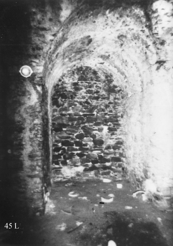 La imagen 66Y muestra el interior del apodyterivm, con bóveda de medio cañón, y me-chinales sobre el muro de fondo, y poyetes a ambos lados. También se observa, al fondo, una pequeña puerta arqueada, que podría dar paso a otra dependencia, hoy no descubierta.