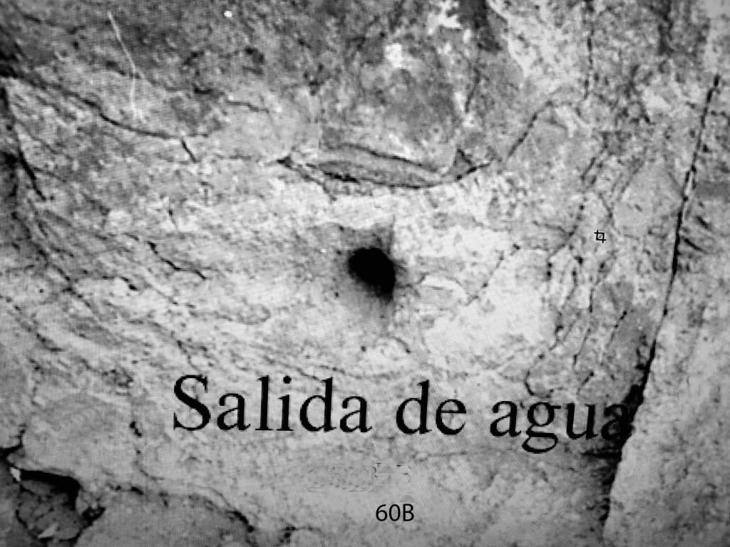 La fotografía 71Y destaca por indicarnos la forma de la pila, sus escalones para bajar al agua y el revestimiento con citado estuco. En la fotografía 72Y se muestra el detalle de los esca-lones de acceso al fondo de la pila.