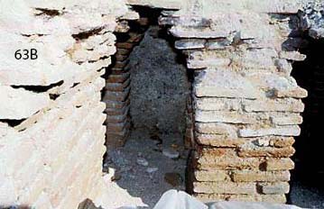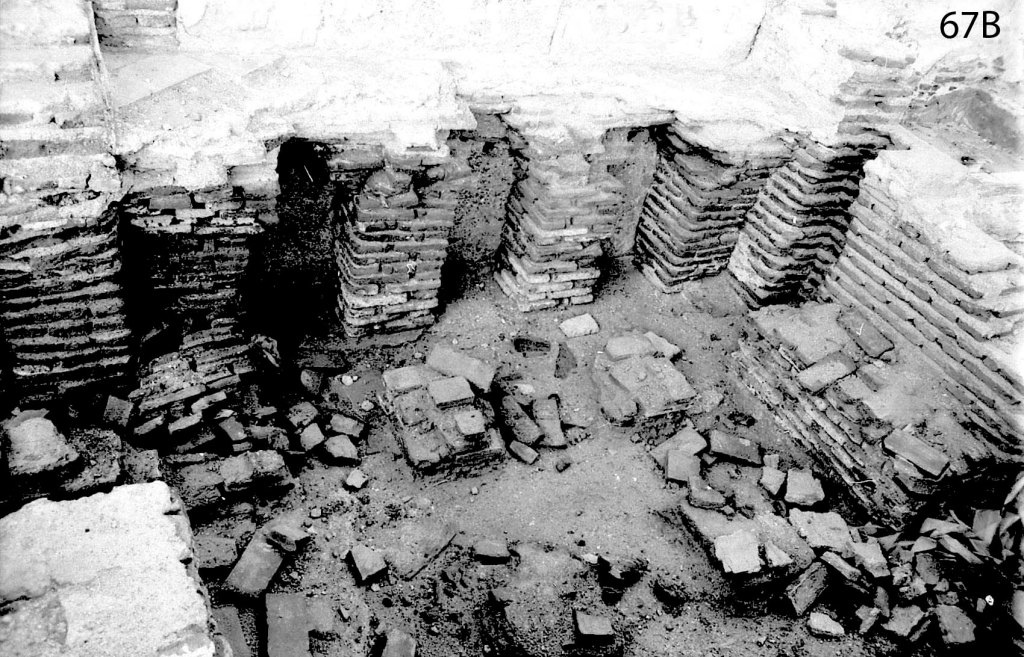 En la fotografía 65Y se ven, en la parte central de la imagen, la bóveda del apodyterivm o vestuario. A izquierda, los puntos de arranque de los arcos rotos del hypocavstvm; y a la dere-cha, los muros que circundan las formas de las pilas de baños.