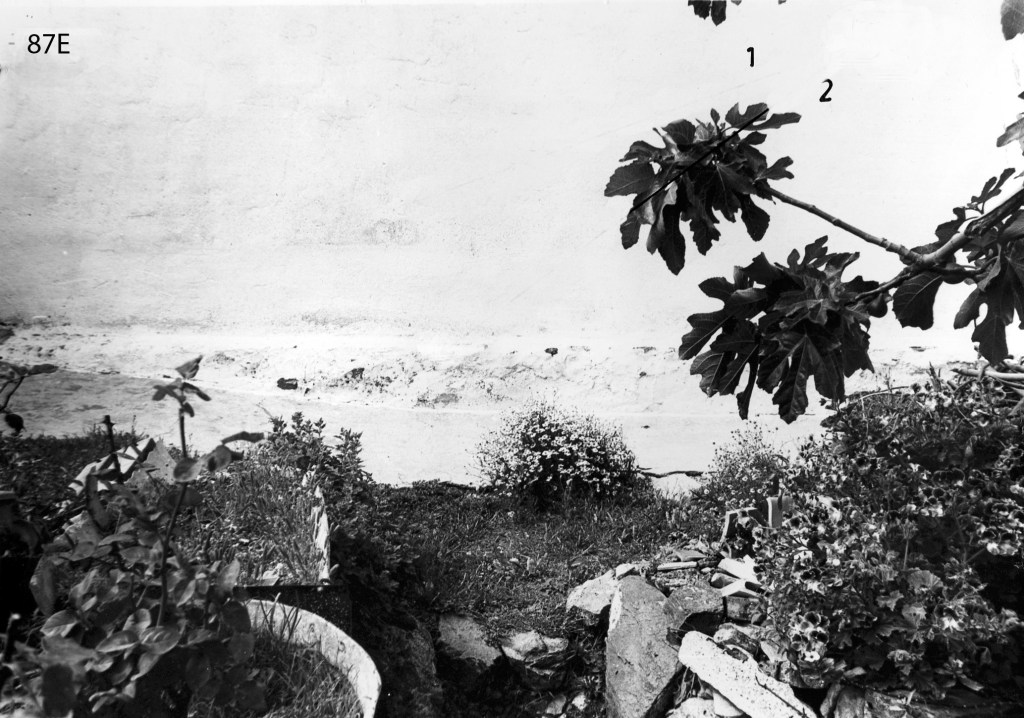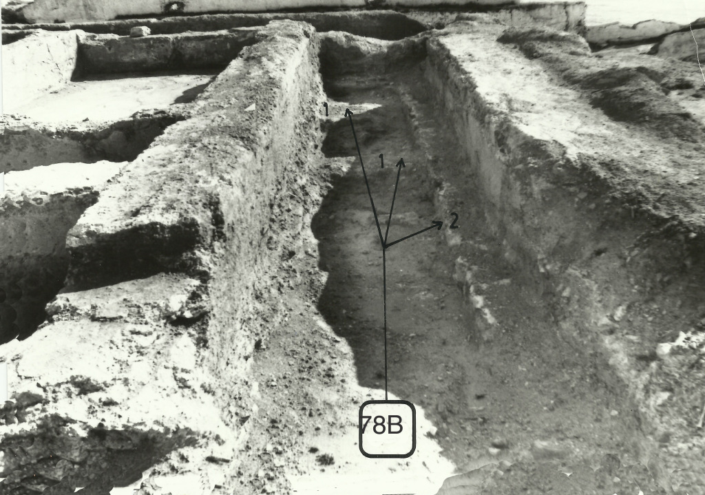 La fotografía 76Y indica un lugar de las termas donde pudo estar la dependencia de la biblioteca. Muestra en una de sus laterales un escalón que podía servir de asiento.