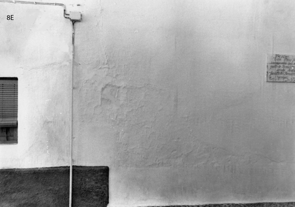 Seguimos la línea de muralla de circunvalación y hallamos un tramo que, hasta hace pocos años, conservaba el mejor testigo de toda esta secuencia (fot. 33Y). Se podía ver el aparejo. Era parte del muro externo de una típica taberna llamada El «Jarapo», continuando por la carpintería de Justo, elemento colindante y coetáneo.