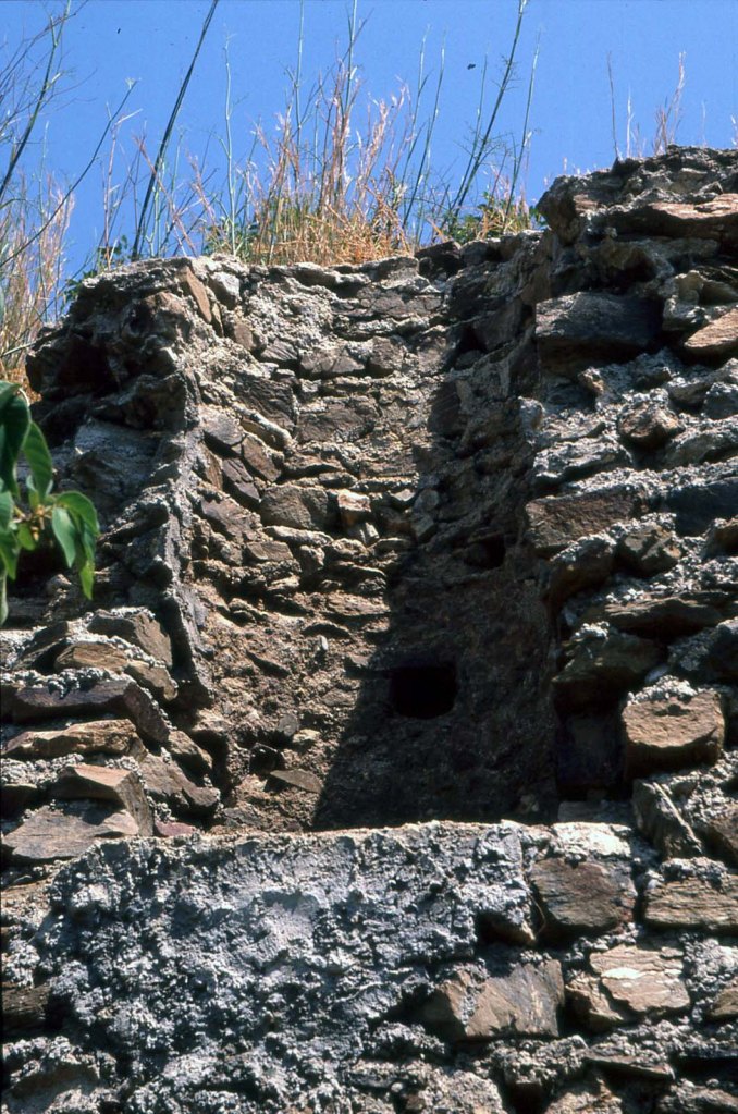 El alto muro, que se ve en 16Y, conserva el grosor de la estructura interna del aparejo romano.
