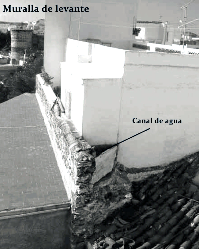 Por todos los indicios, según examinamos la línea de fachada, ello parece indicarnos que el canal con las entubaciones, procedente del acueducto, tenía que discurrir por niveles superio-res a los que se ven.