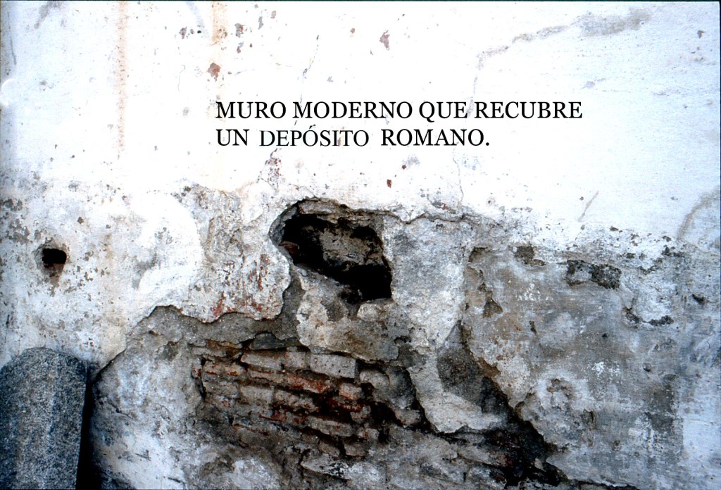 Todo parece indicar que pertenece a una antigua construcción romana desvinculada, por lo que parece, del conjunto urbano que se viene considerando unitario, pero que, a su vez, se integra en otra que se ha detectado en ese sector de la ciudad y que actualmente se encuentra en su totalidad bajo las nuevas construcciones, prolongándose en sentido oeste. Las medidas que se han podido tomar son: largura, 3,50 m; altura, 1,30 m.