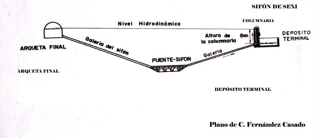 Se piensa que se produciría un encuentro de canales en el centro de la vaguada, que entonces configuraba la actual Plaza del Ayuntamiento, y más concretamente, en el interior del viejo edificio del antiguo Ayuntamiento, sito en el mismo lugar. Desde aquí, por la citada vía subterránea, se llegaba a la susodicha finca, cercada por el murallón. Se piensa que, a su vez, otra línea debía partir en dirección a la Iglesia, como a simple vista es obligado admitir, centro de distribución y canalización principal de todo el complejo de Seks.