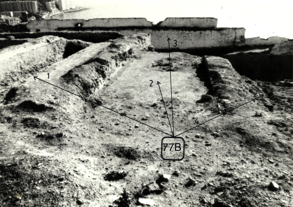 Las fotos 77Y y 78Y muestran espacios sin definir por el mal estado de conservación y los pocos datos que nos ofrecen para su identificación. No cabe duda que eran dependencias anejas y complementarias de las termas.